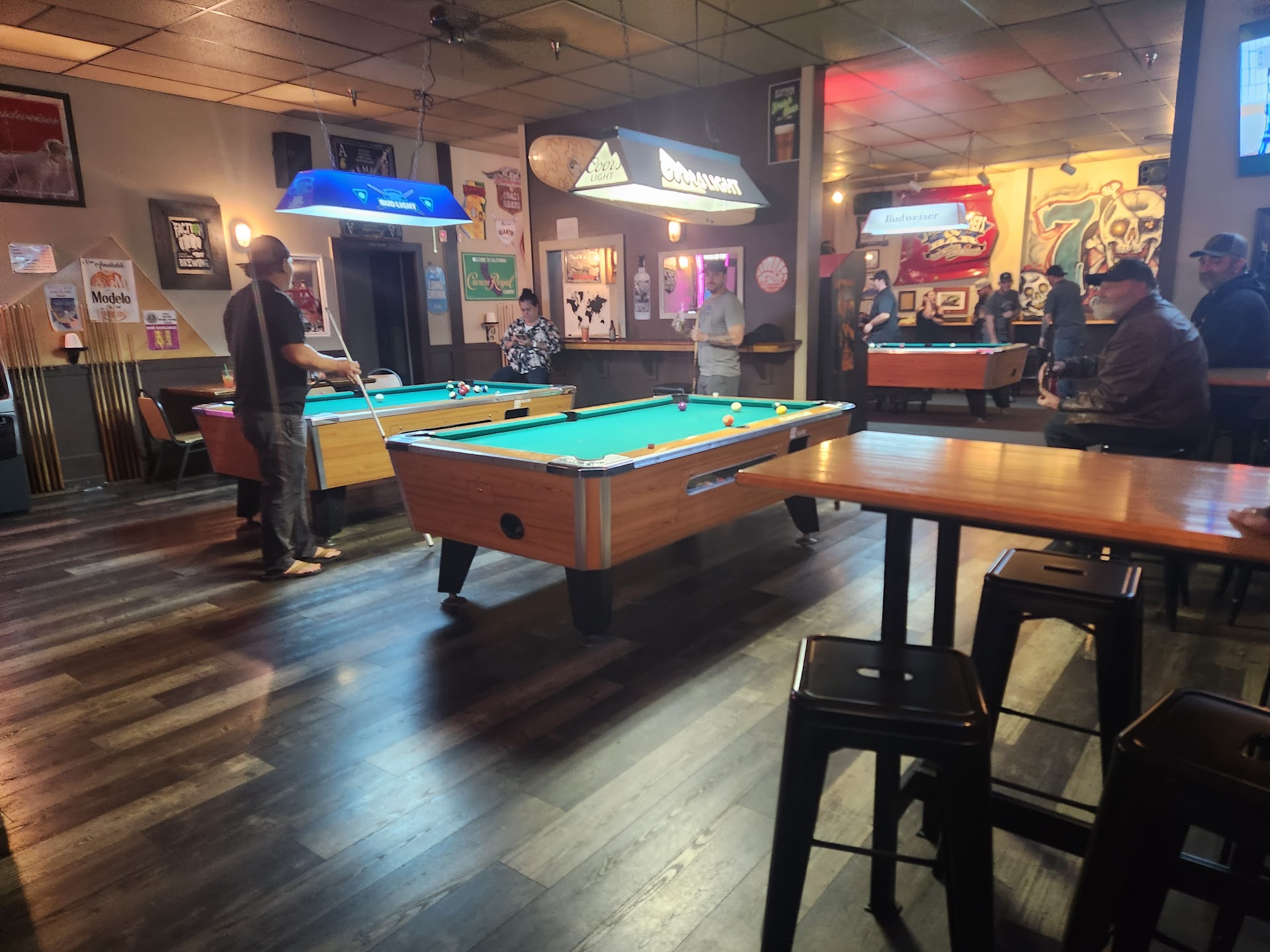 The pool tables are in good condition, and they have a couple of arcade game, air hockey, and a small outdoor patio with some tables out back.