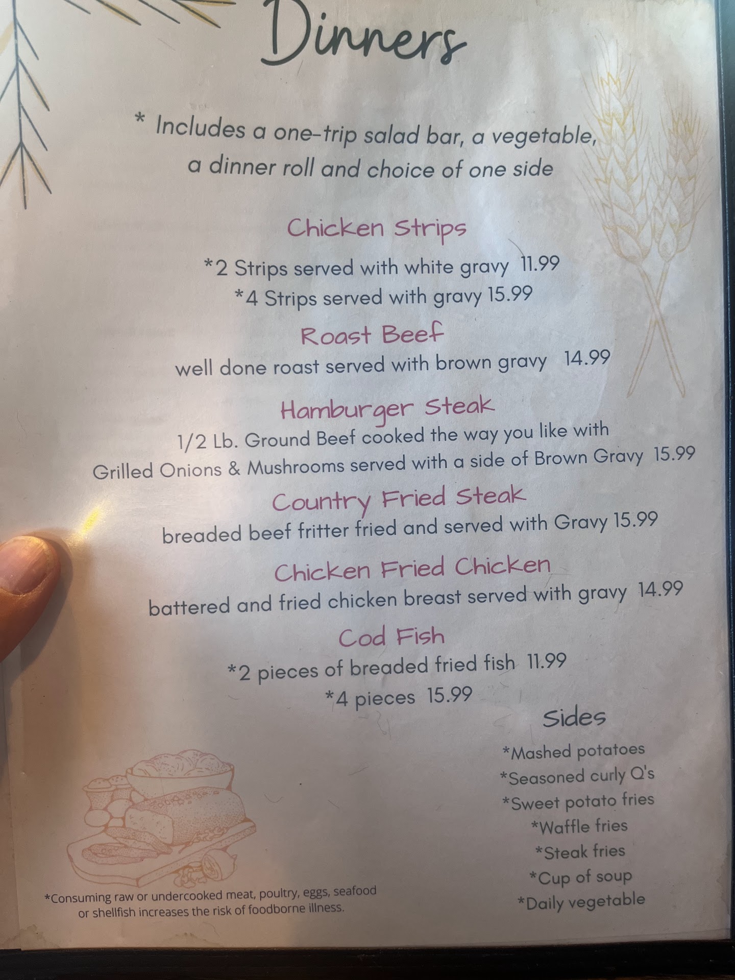 I don’t really understand why this has so many positive reviews, honestly. To start off, the salad bar looked like it had not been changed with fresh selections for hours. Everything was oxidized and dried up, looked inedible. I had the country fried steak, and even from the appearance of the meal I could tell it was not going to be good. The gravy had dried up to the point that it looked like it was sitting under a heat lamp for 40 minutes. The meal was not hot, it did not taste fresh, it did not have a pleasant flavor over all. My favorite part of the meal was the beverage. Finally, the service was rather poor. Not very busy, didn’t see many faces. However, the few that I did, they genuinely looked as if they did not want to be there. Really, everyone there, including the customers, seemed rather standoff-ish. I did not enjoy this town, the people, nor this food. Hope to never have the displeasure of being...