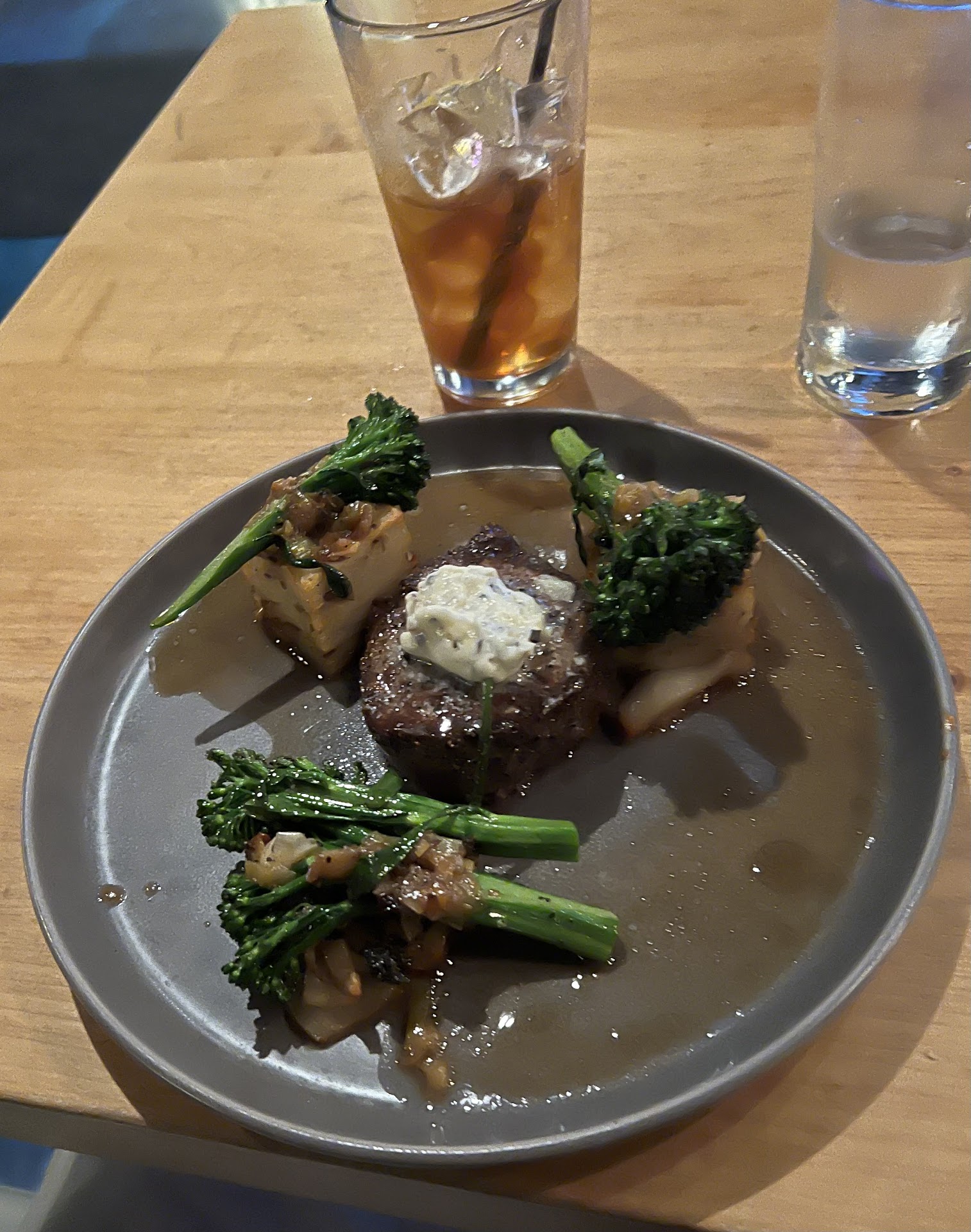 For the main course, I chose the braised short ribs, and I was blown away by the rich, deep flavors of the dish. The meat was incredibly tender, practically melting in my mouth, and was complemented perfectly by the accompanying vegetables and a silky, flavorful jus. My dining companion opted for the seared scallops, which were equally impressive. Cooked to perfection, the scallops were paired with a risotto that was creamy, aromatic, and bursting with flavor.
