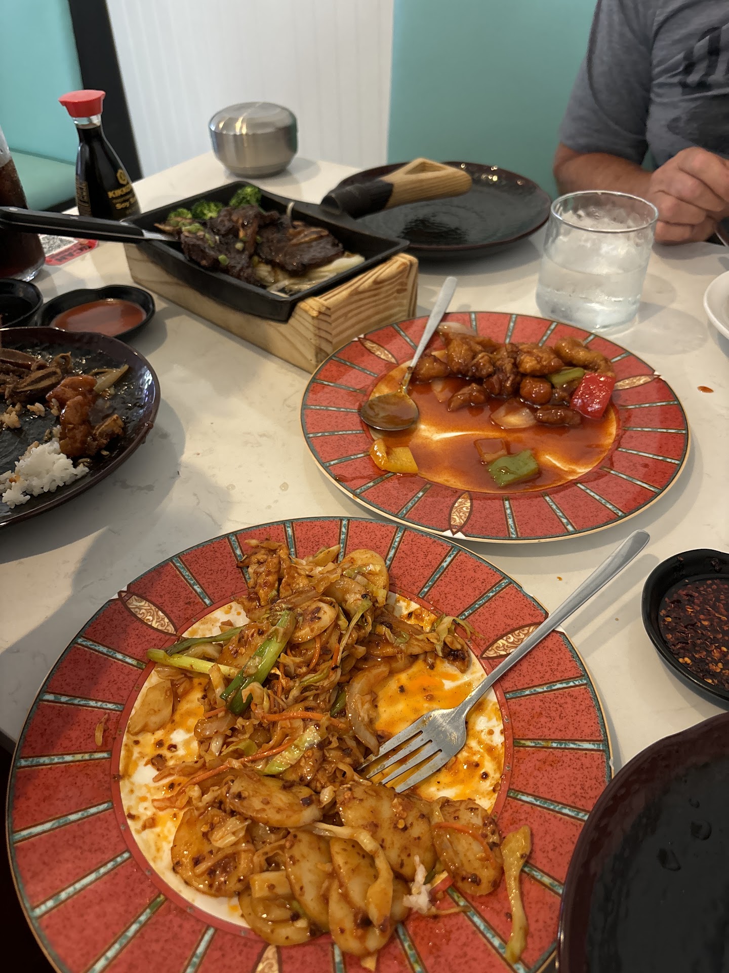 Came here on a Friday night and it wasn't too busy, decided to go all out ordering with friends. Several items didn't make it out to the table and we had to remind staff of our order, some appetizers came out cold still and some took way too long to make it out for the size of the crowd. Had some clean bowls come out with oil on them. Had to fight for drink refills and definitely needed more utensils for sauces. For being not that busy on a Friday night it was loud and the place could use more sound breaking decor as it feels like an echo chamber with the open tile floor everywhere.