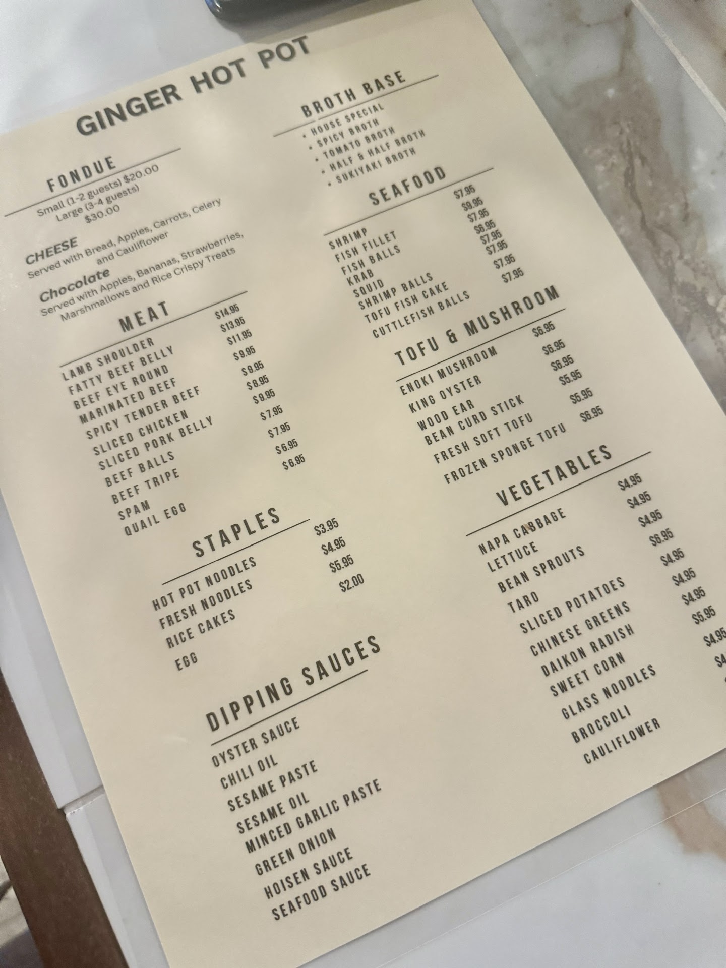 Ginger delivers hot pot that is superior to anything I ever had in the Bay or Vegas. The ingredient quality is also top notch for the area. The staff is so involved and caring that it gives me immense hope for restaurants locally. I've never been treated so well by ownership, management, and floor staff in Humboldt.