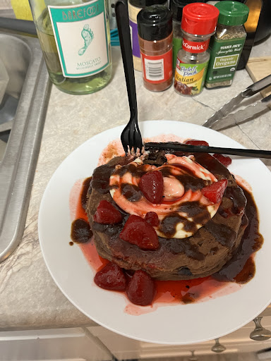 I decided to treat my girlfriend to her favorite place after a long day. She was very excited to get the new pancake of the month (chocolate covered strawberry) I went inside to pick up our take out order and was excited to present my girlfriend with the meal she’d been anxiously awaiting. It was not until we arrived home that we realized an atrocity occurred. I moved her pancake onto a plate and poured the strawberries on for her. They looked and smelled delicious! I then poured the chocolate on top. Not even a minute later, I discovered a strange odor coming from the plate. It smelled extremely sour, but seeing as though it wasn’t my food and I hadn’t had it before, I decided maybe it was normal? Upon smelling it closer, it grew to be more bitter, it smelled as though I had just opened a fresh jar of green olives. I excitedly delivered my girlfriend her breakfast for dinner despite the odd odor filling my studio apartment. It was 30 seconds later that I turned to her in tears. They had mistaken chocolate sauce for bbq sauce. My girlfriend, so excited for her wonderful chocolate strawberry pancakes, took a large bite of strawberry-bbq sauce cakes. We had to throw out everything, and I had to share my panera mac n cheese with her instead. I have provided a photo of the pancake, if you look closely, the “chocolate” sauce just doesn’t look right. Why would it be chunky you ask? I don’t know, maybe because it’s bbq sauce. My apartment still smells sour. Do...