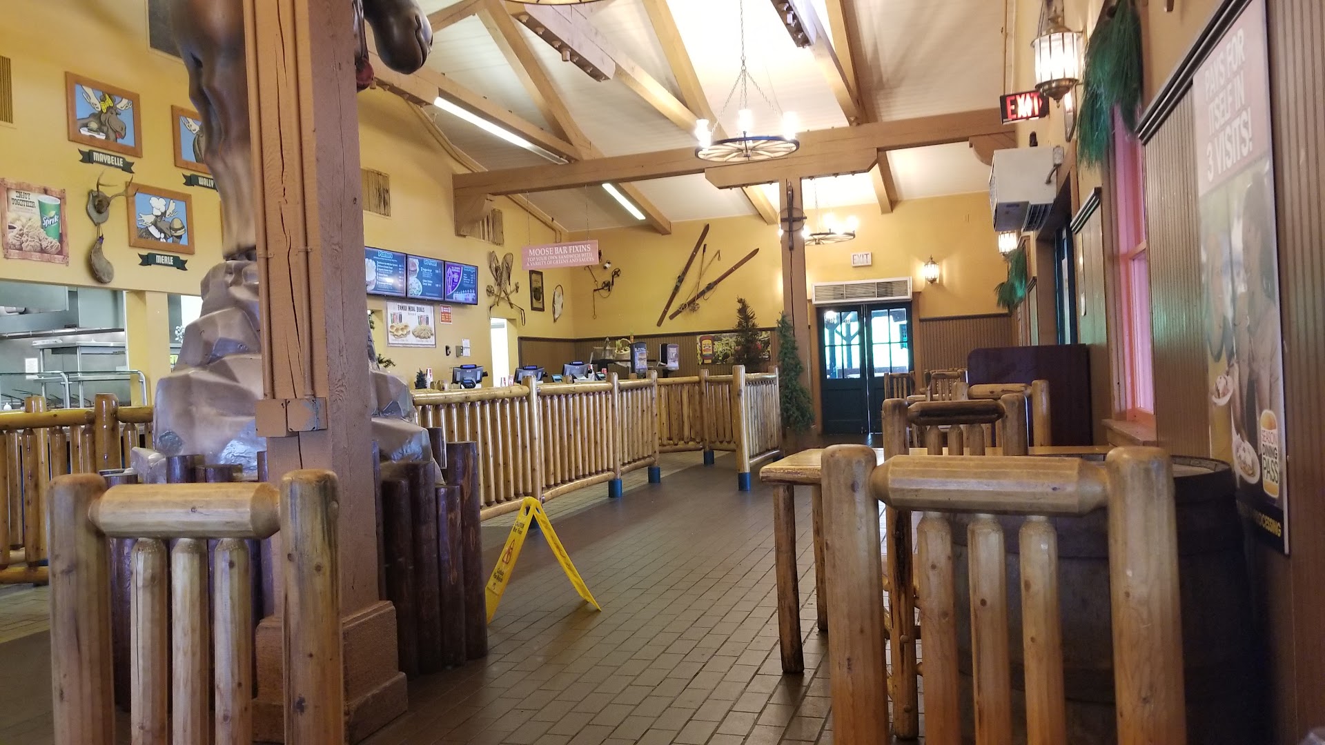 Pretty decent burger place within Six Flags St. Louis. Compared to the Johnny Rockets, this restaurant has slightly larger burgers, better variety in burger styles/toppings, and is about 20x less busy and messy (no exaggeration). The theming in here is pretty fun, with a rustic log cabin sort of look and plenty of moose paraphernalia. There is also tons of really nice outdoor dining areas attached to the place. Sometimes I will bring food from elsewhere in the park to eat here. It was by no means an amazing hamburger, but absolutely passable in my book. Fries were quite good, if not a bit too salty for my liking. They also have some more unique non-burger offerings, like a brisket sandwich, a Philly cheesesteak, and a chipotle grilled chicken sandwich. The big catch with this restaurant is that it is not always operating. Whenever Six Flags has a food-themed event such as Cinco de Mayo or Oktoberfest, they sell these food items out of Mooseburger and override the standard menu. So while not always available, and not mind-blowing in my opinion, the food here is...