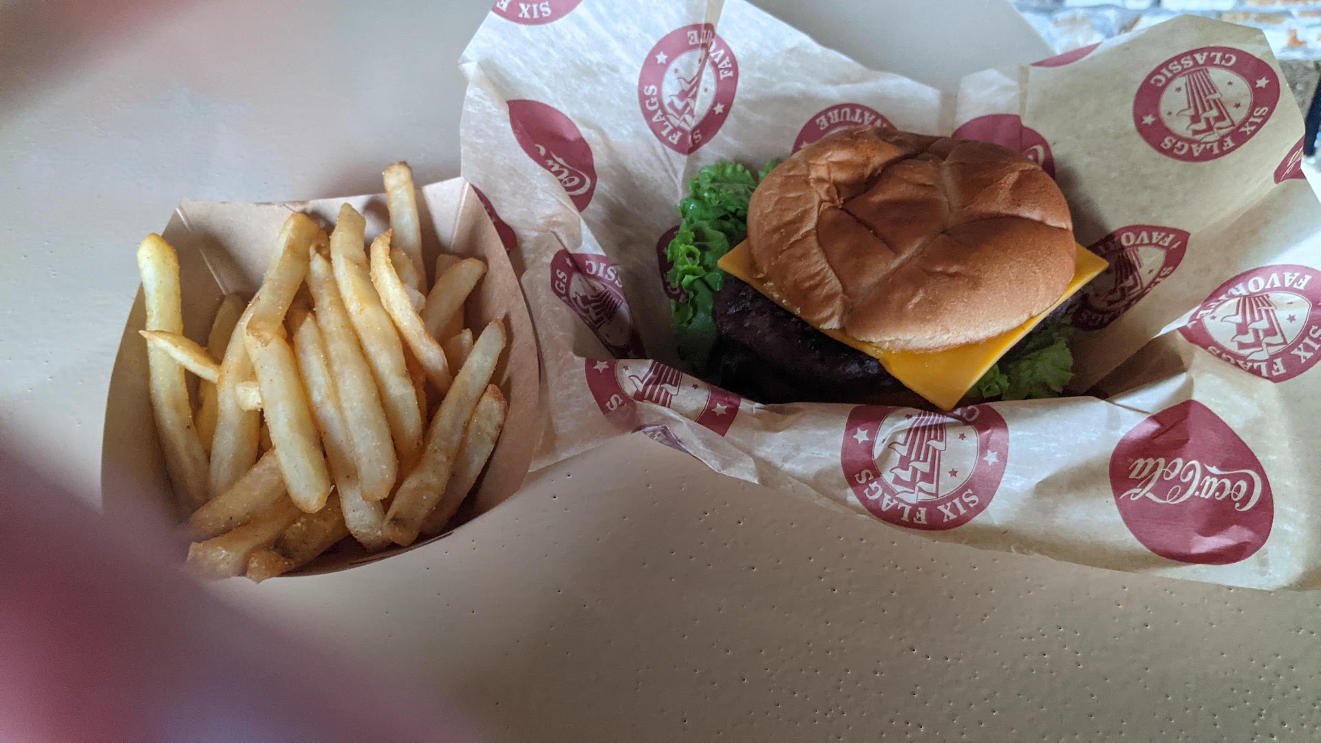 Read moreThere was an issue with our order where they changed us for 3 burgers instead of 1, we asked them to remove the 2 burgers we didn't order, so they removed 2 and added one back (3-2=1 1+1=2); it took two members of their staff and the manger to do the math, and by the time they did, our food was cold. On top of that the Coca-Cola Freestyle's (Pop dispensers) were out of order, and you could only get diet beverages. The food for x3 the price of McDonald's burger while subsequently being worse is absolutely not worth it. If you go to Six Flags St. Louis, bring snacks, and bring a debit card, because no cashier's in the park could give...