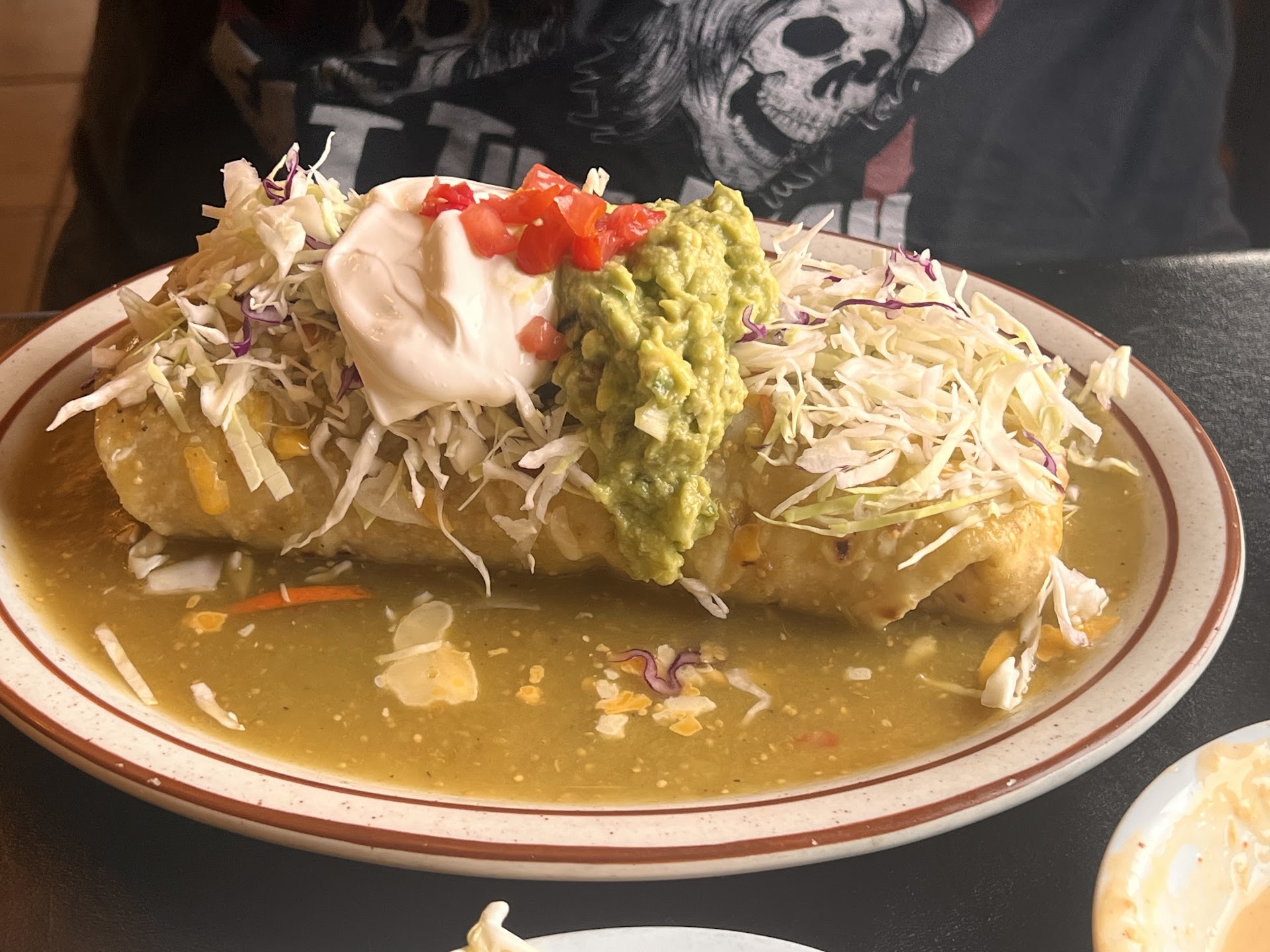 Albondigas was beyond bland and the meatballs lacked rice and were way too firm and chewy. There was no seasoning in the soup at all and a weird agglomeration of random vegetables (broccoli?? Snow peas?? Green beans??). We dumped the remaining roasted salsa and the Ranchero sauce from the chimichanga in just trying to give it some kind of flavor, but alas it wasn't enough.