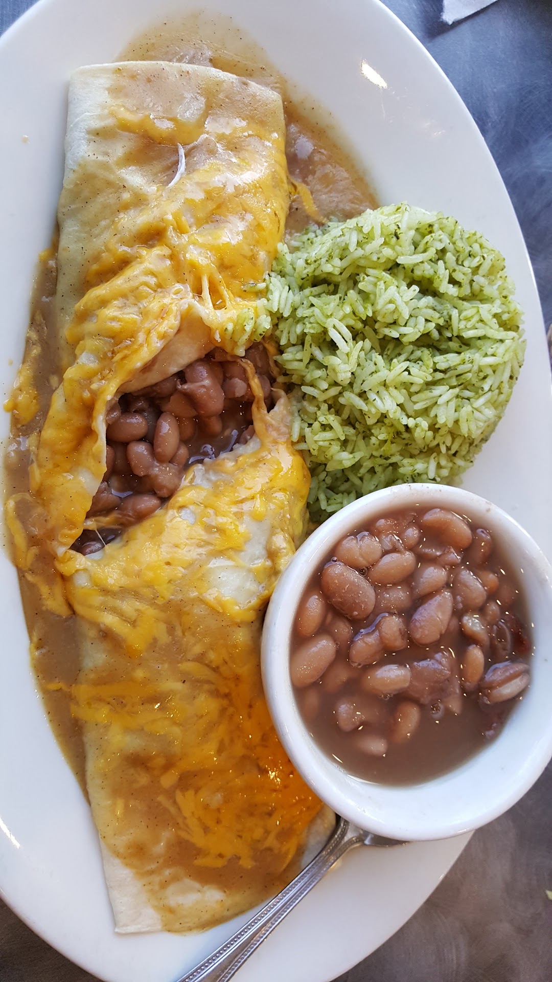 I got the burrito and it was just beans in a tortilla with cheese on top. The frozen bean and cheese burritos we make at home taste the same and are $1 instead of $10. I liked the cilantro rice. It would have been nice to have double the rice instead of a side of beans. Even better would have been tomatoes or onions, or pico de gallo, or guacamole,however, that costs a few dollars extra after an already pricy burrito. I was interested in some of the other menu items, e.g. fajitas, smothered burrito, but they were even more expensive.