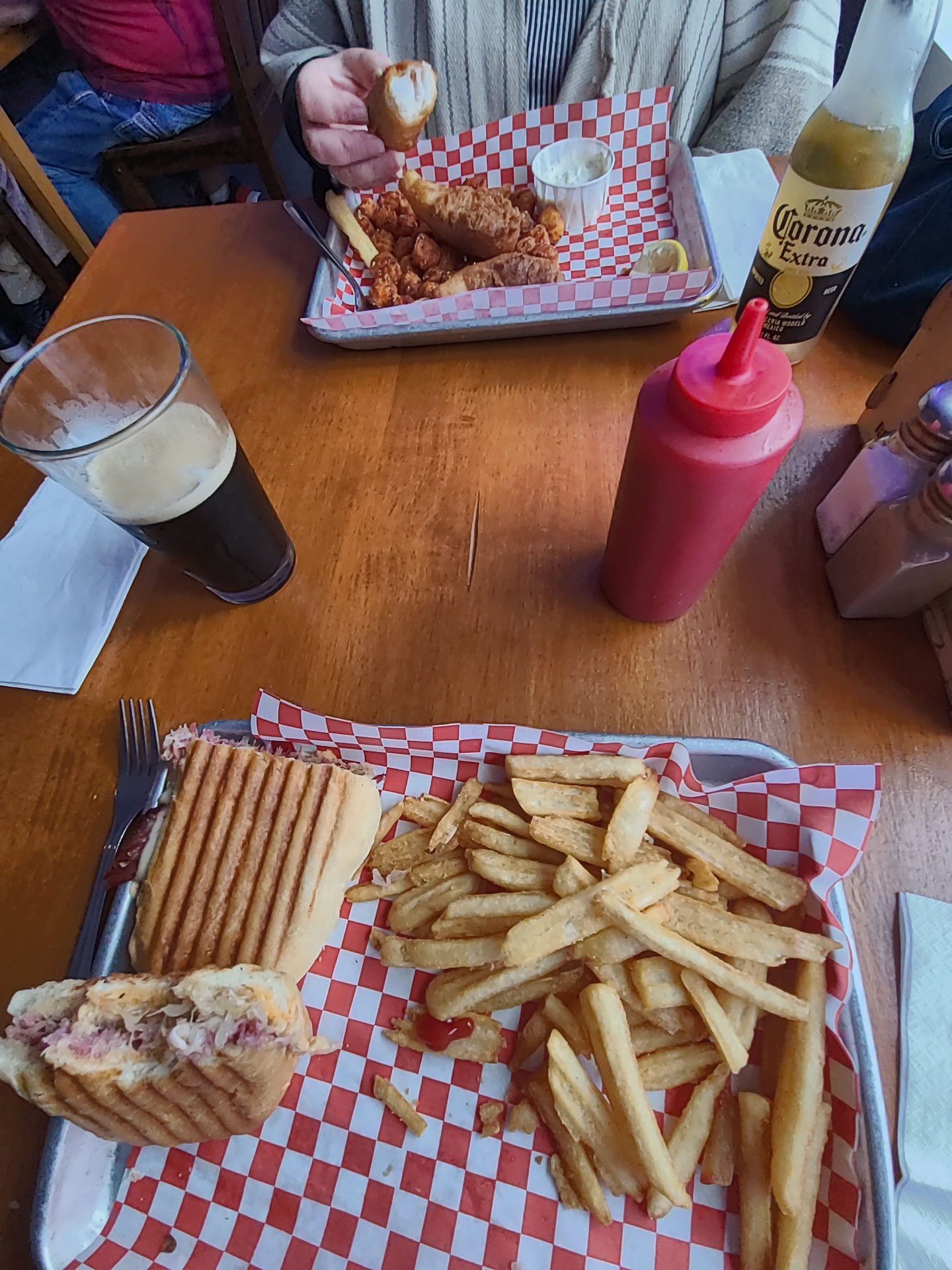 Read moreDown at the foot of Commercial Street on the West waterfront is a small bar and grill across from the Pacific Seafoods processing plant. Parking spaces are on all sides and the waterfront trail is right there although there is no view of del mar. The small noisey space had been updated and the seating is all high top stools at tables and the full bar. There are plenty of draft taps and bottles. High mounted TVs display sports. Food is served on a paper covered metal tray on bare wood tops with paper napkin wrapped metal utensils. The menu features fried food and sandwiches with Cuban flair. We had lunch and it was busy, but the lone server did an amazing job handling the whole room including the bar. We had fish and chips (20), a sandwich 16, a bottle of corona 4, and draft beer 7 (Pint of north coast old Rasputin). The food was mostly excellent. The fish batter was crispy as well as the fries and tots. The "reubano" sandwich was fine, however it was thin on protein. The pan Cubano was the main feature, but could have used more fat in the grilling. I asked twice for Dijon which I loved, and it's lateness can be forgiven because of the high customer to server ratio. We plan to return to sample the fish tacos and a regular...