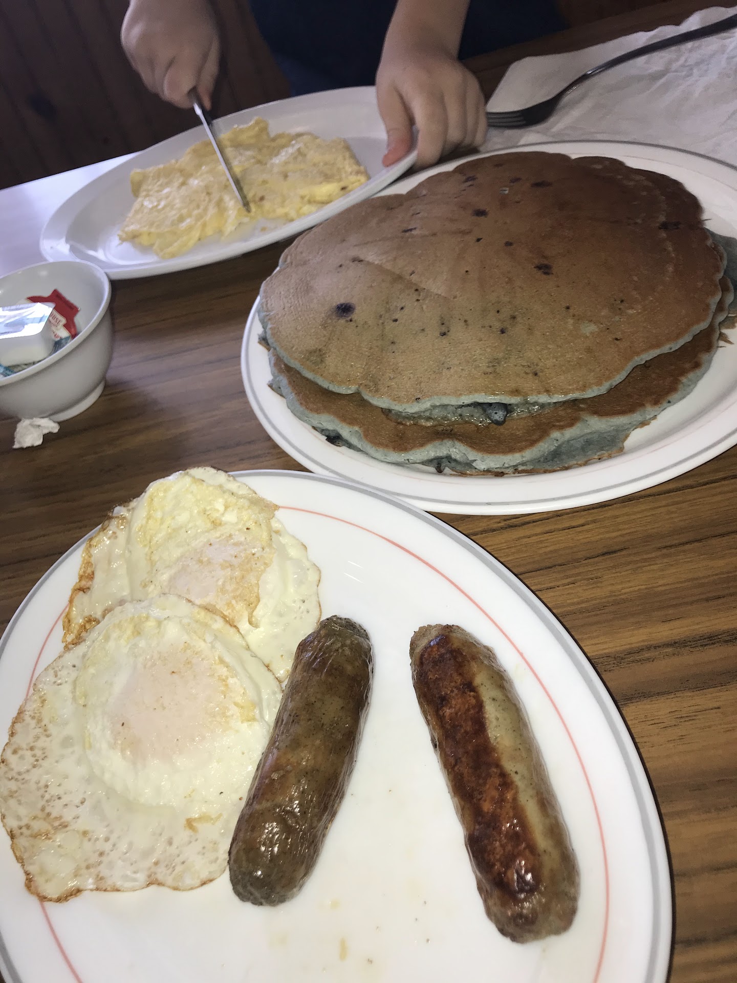 Read moreThe food was tasty and I enjoyed the breakfast sausages and sausage gravy. I could tell they're not your normal store-bought stuff and it really did taste well. My wife had a burger and she said it was just fine and the french fries were nothing special just crinkle-cut fries. She said they were crispy and tasty but she asked for ranch and it was pretty much just craft ranch squirted in a cup. She did point out that they didn't have butter they only had whipped spread and little plastic containers on the table. And that really kind of you know puts us off on taste. The decor of the place is really not good. The colors very dark the walls were painted with a flat paint so all the splatters could be seen on the walls and you can't exactly wipe those down on that type of paint finish. We could see into the kitchen and it just wasn't...