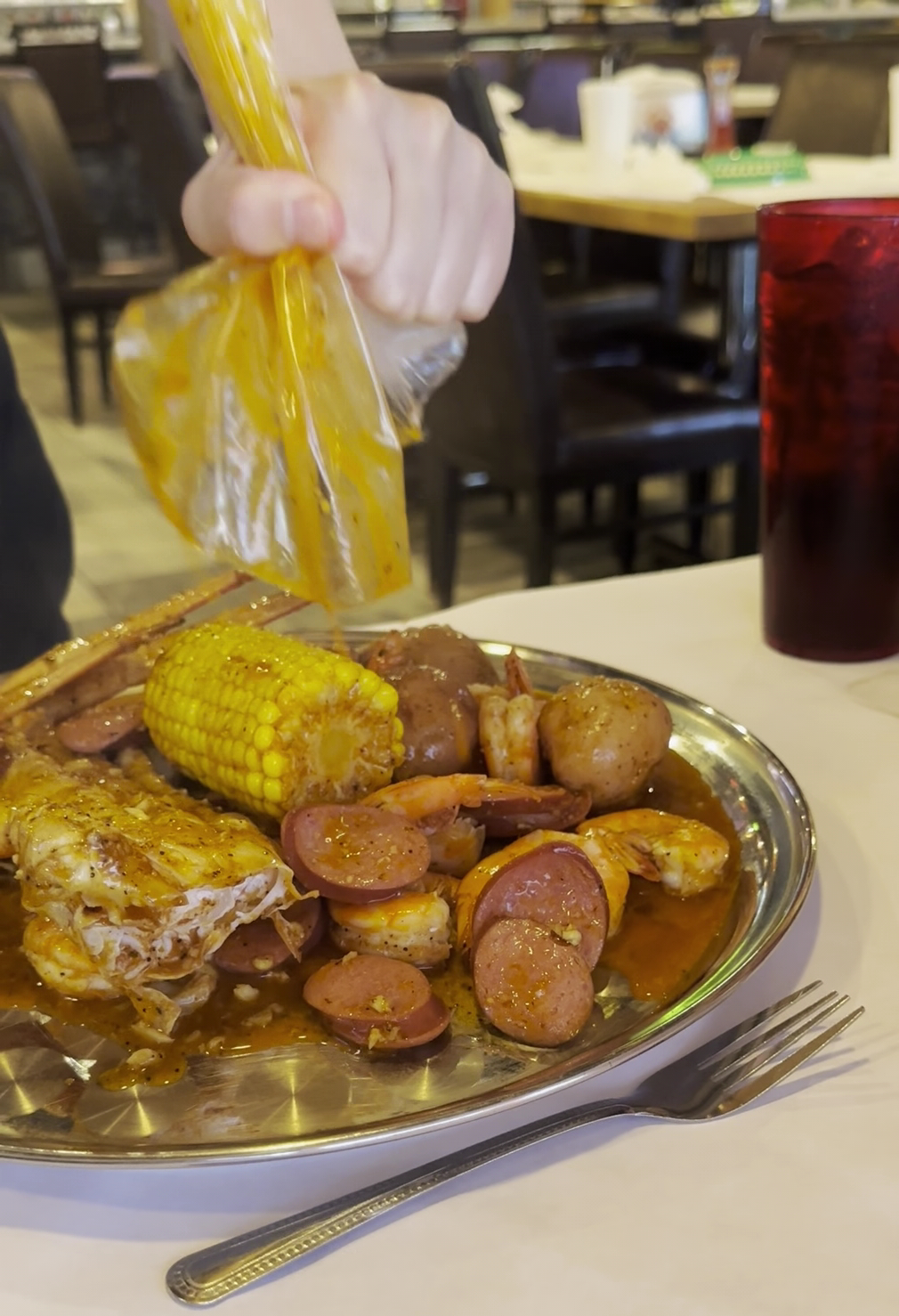 This was my first time here and the service was not good waiter was rude rushing us as we were ordering and even said I’ll be back when she felt we wasn’t fast enough. When questioned about some of the things on the menu she didn’t explain it nor did she have patience with us asking questions. Some of the stuff we ask for was forgotten a few times. When it was time to leave we had to get sauce from owner and I had to walk to the bar to get bags to put the food in we had left. Manager came I even explained to him he tried telling me she came to check on us more than twice oops wrong we must’ve had end of the night food because it definitely was giving potatoes was hard and so was my corn, crawfish taste like it was thrown from boiling water in a sauce I sent them back didn’t even send the mussels back they was definitely overcooked dried out just covered with sauce calamari’s fried to perfection just bland like not a tap of seasoning or nothing the best things I had was oysters shrimp and eggs. It’s crazy because even telling the owner he did nothing to try and make it better I wasn’t trying to get money back and I said that to him and I proceeded to let him no I wasn’t satisfied. As an owner he didn’t even try to make it better he could have handled it better with options hell I would have been satisfied just to have my food remade...