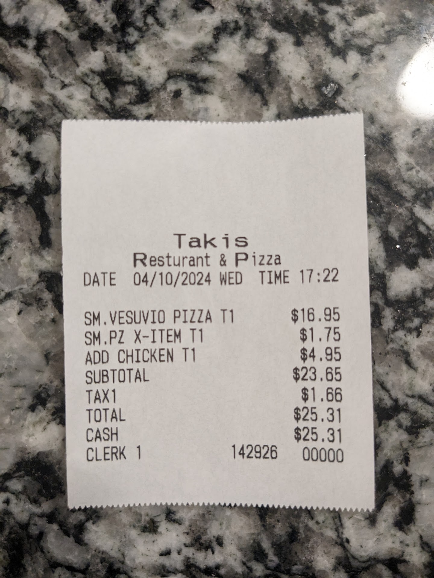 Read moreMy fiance and I decided to try their food last night. Worse excuse of Italian food ever !!! Normally we order from Stavros but we decided to try Takis because they deliver and we didnt feel like going out to pick up food I ordered the baked spaghetti and meatballs and she ordered the chicken parm & spaghetti. The pasta was dry and seamed as if it were cooked hours in advance, both hardly had any sauce which just made it even worse, the tiny piece of chicken on hers and three tiny meatballs on mine were all dry and rubbery, and the garlic bread was a joke as we couldn't taste garlic and it was basically a half of a hot dog bun doused with butter and not even toasted. After tipping the driver I spent $40 for one of the worst meals I've ever eaten from a restaurant. I will never again waste money on the garbage they call Italian food. I highly recommend making the drive to Stavros to pick up the food yourself the quality is night and day in comparison and the prices run...
