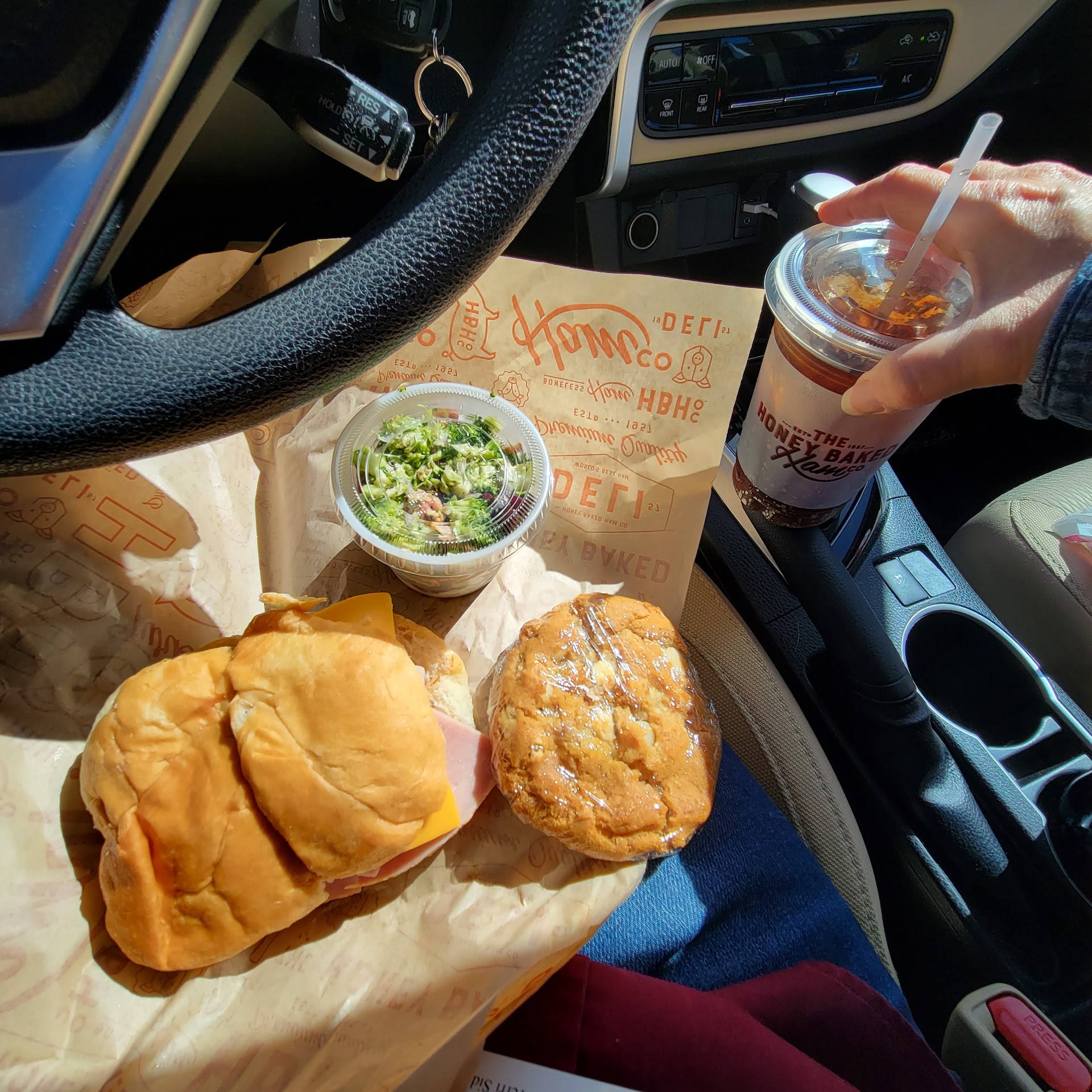 Read moreThis is what a $16 lunch looks like!!! I have been coming to this Honey Baked Ham location for over 30 years, and I can honestly say that I won't be back. Boxed lunches are now called "meals," unless it's a catering order, and the price is ridiculous. It comes with a sandwich, chips, a cookie, and a drink. You used to be able to choose from a range of sides like potato salad or fruit with no upcharge, but I paid a $3 upcharge for broccoli salad because I don't eat chips. Oh, and the cookies...check out the picture. NO ONE in the restaurant would touch them. Every single one of them was burned. I can't believe they had them out for sale. The girl at the register was very nice. She brought me a fresh macadamia cookie, even though that's not what I wanted. At least I can say that the sandwich was stacked high and...