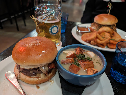 Read moreSeems like my first and most recent review was back on April 10, 2022. Updating my review now on National IPA Day. Enjoyed their Little Juice Coupe IPA 5.9% ABV and their oh so unique Rauchbier. Food still excellent. Pictured here is The Grilled Dill, a grilled cheese pickle sandy and a cup of pickle soup. Hit the spot. They also have a fun-labeled "Hot Rod Hot Sauce" which is pretty much Tabasco sauce. (04.10.22) Came in on a Sunday around noonish. Unique beer different than other brewing companies! Case in point, their Rauchbier Helles Lager and Piwo Grodziske! Both have a smokiness factor to them, the latter being the lighter of the two. The Schwarzbier sounded intimidating with its dark color but ended up being a beer that I can see myself choosing as a regular go-to. You can sample a free taste before committing, and I would recommend opting for a "Taster" size (I think 3oz) for $3. I really wanted to try their Hefeweizen but because this is one of their popular beers, it tapped out before we arrived. Hopefully get to try next time. Not only does this place have great beer, but they also have delicious food, an amazing space, and an amazing super car collection! Pictured here are their Michelada (and Kölsch mixed in), Fried Buffalo Balls (sorry for the blurry photo!), Rauchbier Helles Lager (Taster size), and their space. Video also uploaded to my Google Photos and on their PhotosVideos section. Will definitely...