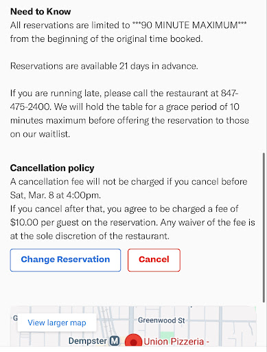 It seems like you have to keep ordering to stay longer than 40 minutes. While the pizza was delicious, the bartenders were incredibly rude, and the management seemed more focused on making money than providing a welcoming atmosphere.