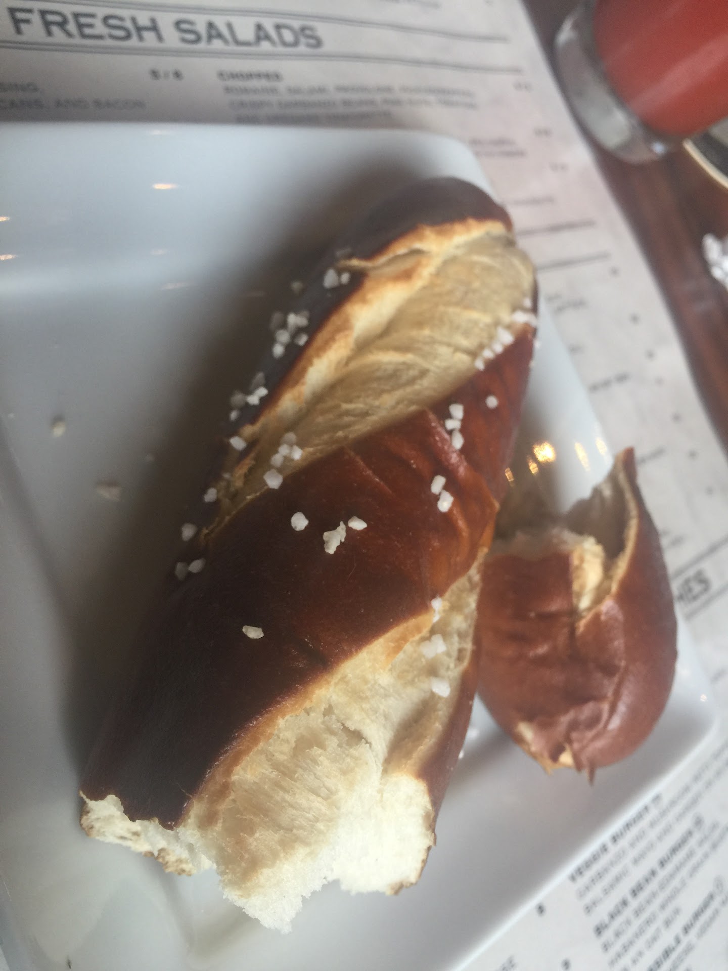My wife and I were in town from Nashville, TN to visit the casino. We wanted try somewhere we hadn’t been for lunch, so we decided on this place due to the close proximity. Once we arrived, I appreciated the free, off street parking (not sure how common that is in Evansville). As we approached the front entrance, we marveled at the beautifully preserved exterior of an old Greyhound bus station turned craft burger bar.
