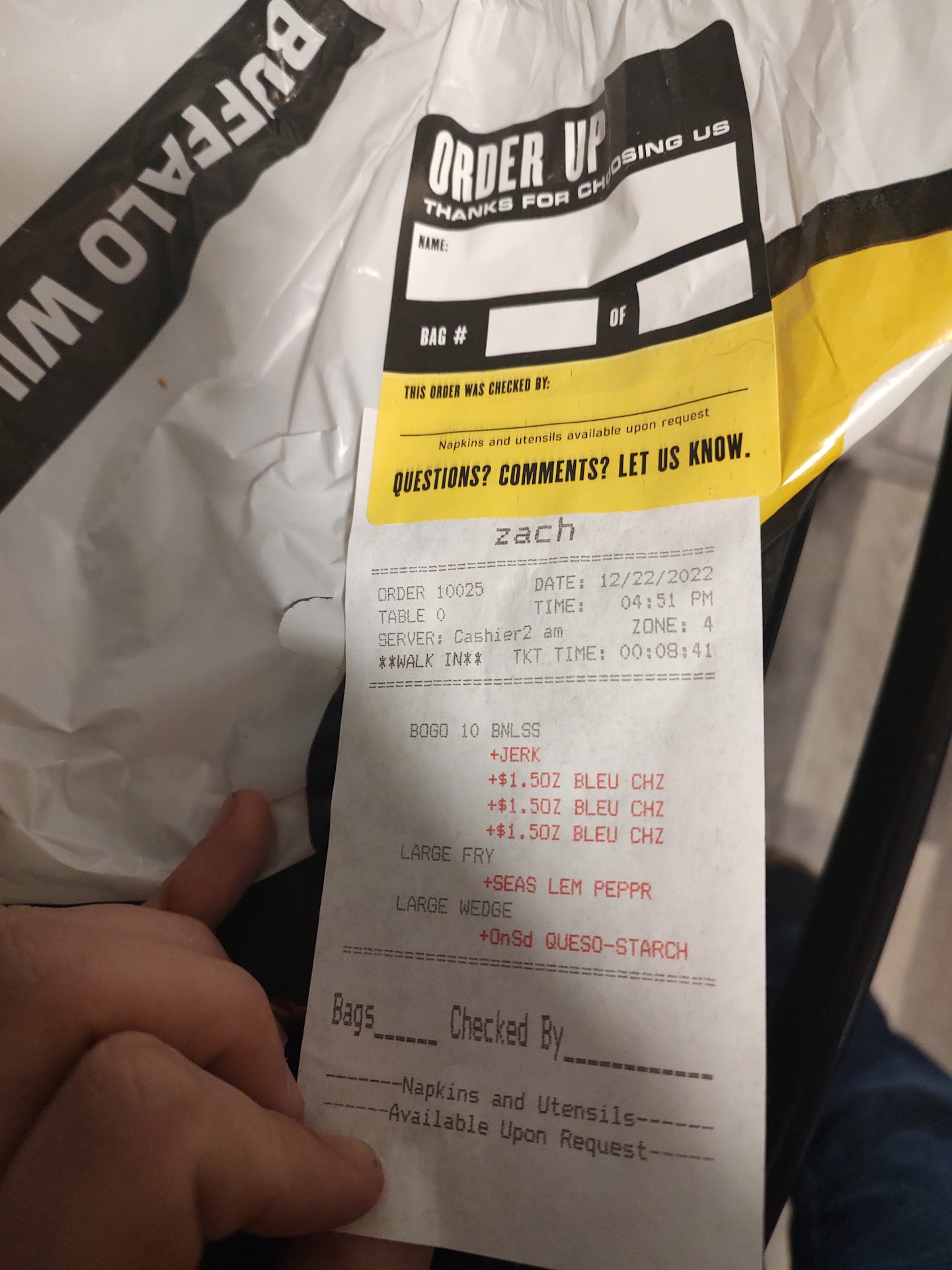 Read moreCame in with my family, waited 10 minutes for a server. Server took everyone else’s drink orders at the table and did not take mine. 10 minutes later we get the chance to order food. My husband and father in law order the house sampler, my mother in law order a chicken sandwich, my daughter got the kids Mac n cheese and I got 10 sweet bbq boneless and wedges. Tables who ordered after us got their food before us. All of the other food arrived to the table except my wings. We were told they are coming. 25 minutes later my husband had to track down a manager to get my wings. Waitress came out and asked if it was supposed to be a to go order. She then brought cold honey bbq wings. Finally got the correct wings after 45 minutes of waiting and my family finishing their food. We were not given silverware or napkins. When we asked for napkins we were given the napkins that you put your drink on. We also caught the female manager vaping in the kitchen. Finally got the receipt and there were two sets of wings on there. Told her it was wrong. She went and one voided. Came back and I told her I was not going to pay for wings that took 45 minutes to get to me and were wrong originally and asked for the manager. The waitress Makayla said even after for you ate them. She came back with it once again not off the bill. Asked for the manager again. Manager came over finally and told us she was new and not good dealing with people who were upset. The waitress came back with the card and receipt to sign and decided not to give us a pen to sign and walked off mad she was called out for...