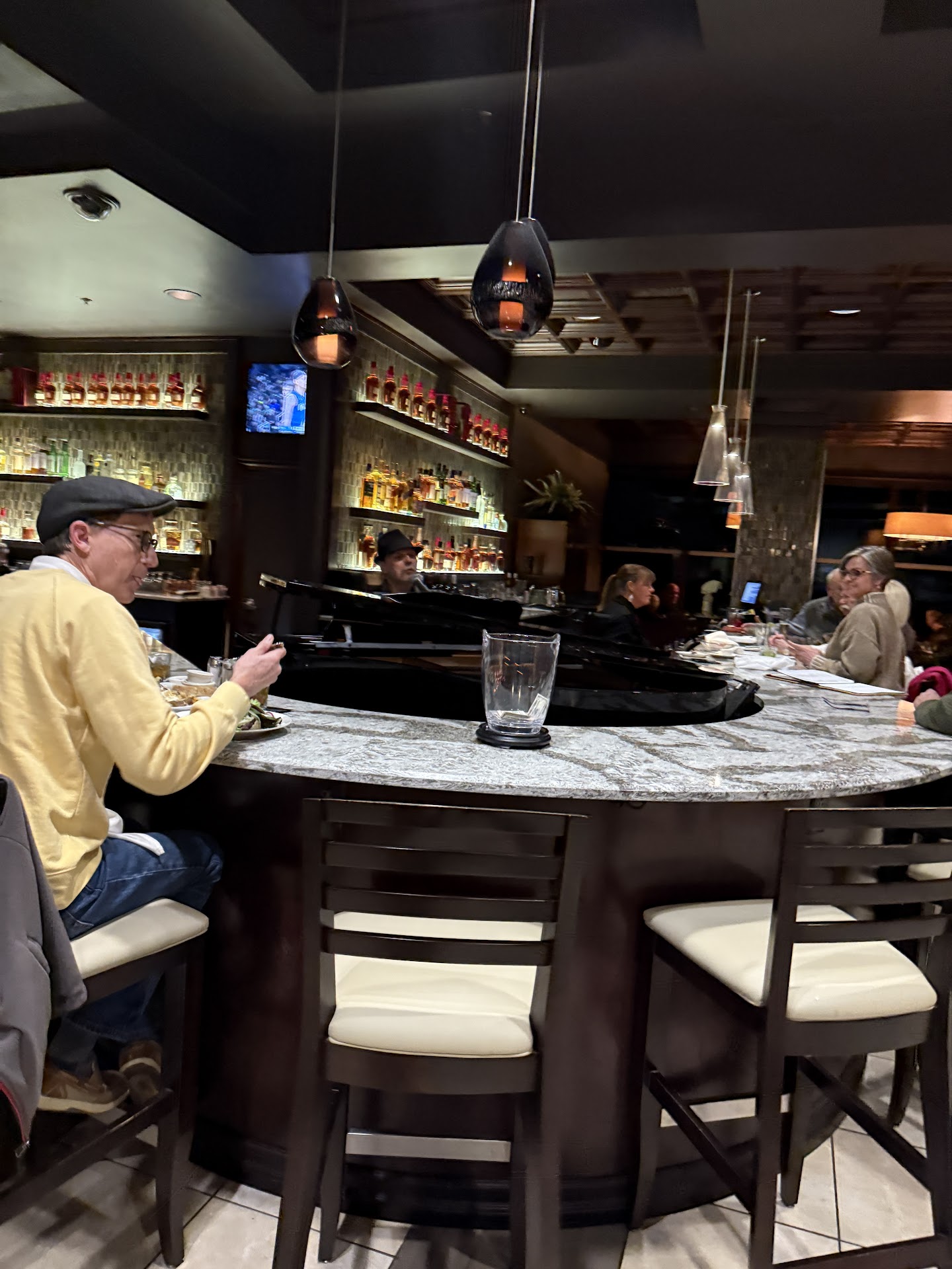 My wife and I selected Cavanaugh's for our 28th wedding anniversary for the atmosphere and food. We both ordered Filets and to share two sides of Scalloped Potatoes and the Brussels Sprouts. After splitting the potatoes and sprouts, she discovered her steak was not hot and the sprouts were cold. We let our server know that the food was not hot and she sent her plate back to be made over. Her steak and Sprouts came back after I was actually done eating, plus her new plate was minus the scalloped potatoes that were on her plate. As I watched her eat, and as we try to have conversation, we both noticed that there was dead silence in the room. The piano player only played 2 songs at a time and then took a break. During the break, there was no music whatsoever, leaving us to hear conversations across the room and as well vacuuming. We could not make any conversation to one another because we knew everyone would be able to hear us. Finally we said something to our waitress and after the piano player came back and did two more songs and a long pause then some music finally started for the last 15 minutes while we had dessert. In all fairness, the manager did come to our table and apologized for the food being lukewarm. He did give us a discount on our bill and we did receive 2 complimentary desserts, which was admirable for the manager to do that. However, our Anniversary meal was an extreme disappointment. We've gone to Cavanaugh's several times in the past and always had a great meal, great service and great ambiance. That's why we returned again this year. Hoping that the management will take note and see that this type of experience shouldn't become the norm in one of Evansville's first-class...