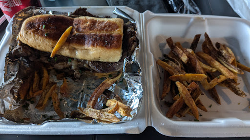 The food took 43 MINUTES!!!! Absolutely insane. So we sat there and at least I hoped the food would be amazing. We got it, the fries was cold and half was soggy the other half was so hard that it felt like it was sitting for 2 days. My steak sandwich, I had to keep spitting out chunks because I would say about every other bit was fat that I couldn't chew through. What a dam disappointment. The steak had zero seasoning, some grilled onions and THATS IT. FOR $20?!?!?! the bread was horrible soggy and overly oily, it seemed like it was sitting on the warmer for an hour. If I got a sandwich like this and fries like this at a fast food place, I would return it and have it remade. Absolutely unacceptable. But after waiting for almost an hour, definitely wasn't doing that.
