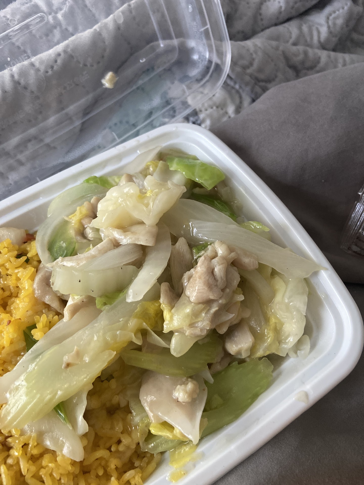 I ordered from China Garden tonight. I usually order from Lincoln Garden but they are currently closed due to construction. And to put it nicely I can't wait til they open back up. I don't get chinese very often because my husband isn't a big fan. So when I do I consider it a treat. First when I called for delivery the lady on the phone was very abrupt and very rushed. I ordered the honey chicken combo which came with fried rice and an eggroll. I also got the small portion of chicken Lo mein and an order of crab rangoon. I should also put that they only have one size portion of crab Rangoon which is 10. I definitely didn't need that much as I was the only one eating. Kinda wished that there was a smaller portion. The lady on the phone said it would take 45-60 min. I said ok but to be honest I felt like that was a long time. When I order from other Chinese places it only takes about 15-20 min. It did take 50 min for my food to arrive but was expected since they did tell me it could take that long. The food was ok yet disappointing. My eggroll was very tough and not all that warm. Like it had been sitting out for awhile. The noodles were ok but the chicken was funny tasting so I took all the chicken out and didn't eat it. The crab rangoon was good. However I got sweet and sour chicken with my combo and not the honey chicken I ordered. I was not happy but I was ok with it cause I like sweet and sour chicken. It just wasn't what I wanted. But my biggest problem I had was with the delivery driver. I understand that people smoke and I could care less if you smoked in your car when bringing me my food, but to stand on my porch with my front door open, with my 6 month old son just inside and smoke a cigarette while blowing the smoke into my house is not ok!! Just for that I will not order from China...