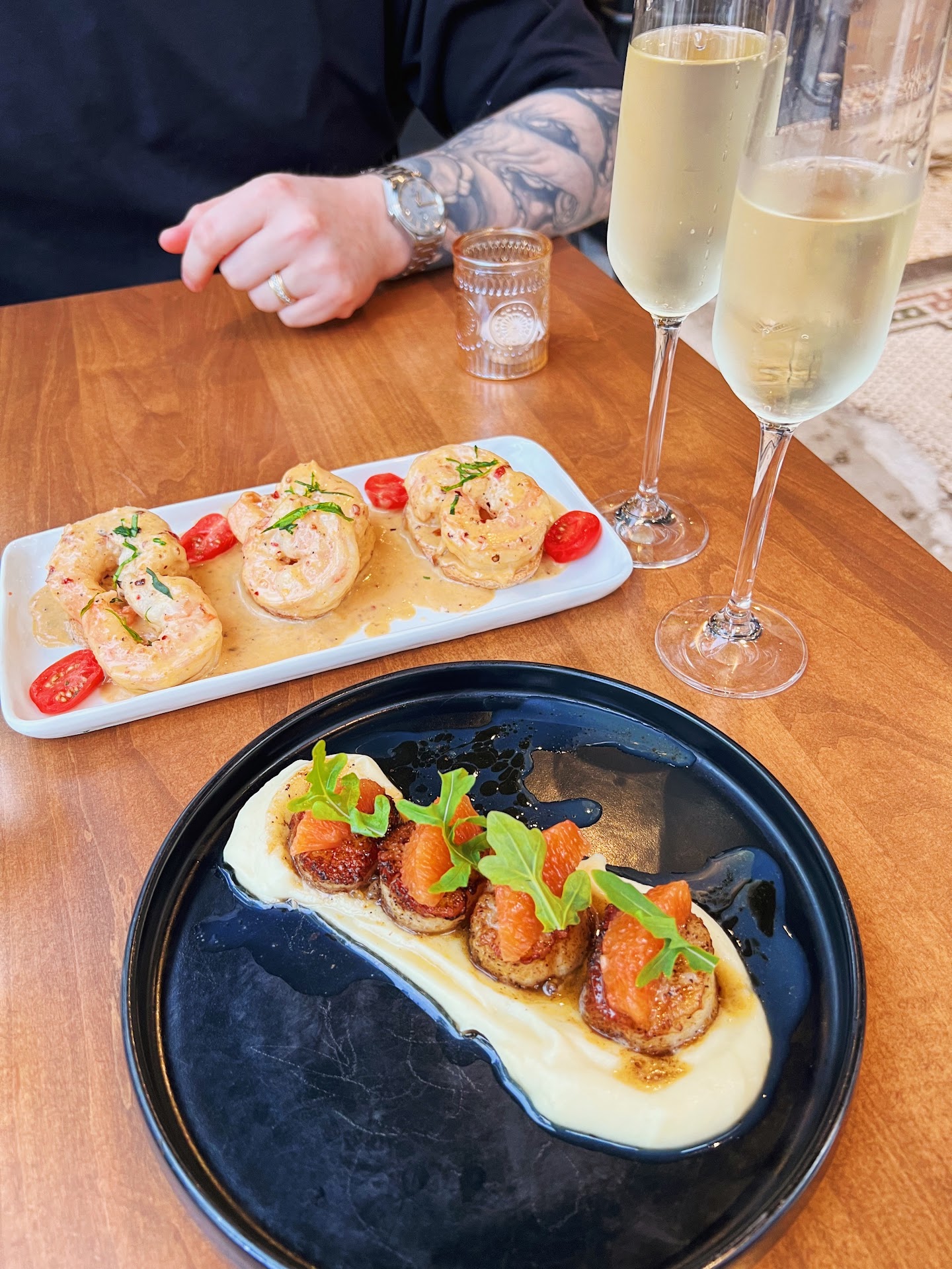 A MUST. This place is so amazingly not Midwest tristate food and it’s refreshing. Everything my fiance and I had was phenomenal. We honestly are upset we didn’t take pics but the food was so good we just devoured it while our eyes rolled back from how much flavor every single bite had! The menu is very different. They have a three course meal serving that runs about $68 per person but YOU GET SOOO MUCH FOOD!!! We left so happily stuffed and should’ve taken food home as you could make to whole meals. They have about three options for the first course and at the moment I highly recommend the braised short rib gnocchi. Seriously I could’ve enjoyed a whole meal of that. My Fiance got the shrimp and crawfish risotto which was so good but he was mad I only shared three bites of the gnocchi as it was THAT good. For the second course they give your stomach a break with a soup or salad option. While the salads sounded interesting and some people might really enjoy the flavor pairings, we opted for the French onion soup. I have been to French restaurants in Southern California as well as Charleston South Carolina prided as “the best” and the French onion soup we just had here is the best and most authentic I have ever had. The onions were so well rendered down and caramelized that they fell apart as soon as you put in your mouth. People who don’t like onions would like this soup. Then for the main or the third course. It’s a full meal that portion sizes are what you get at other not cheap restaurant for almost whatever paid for all three courses. He ordered the filet which was very good. I opted to try their rosemary and garlic lamb leg with heirloom roasted carrots. I didn’t want to share. My Fiance said the mashed potatoes were better than he gets at a very high priced known name steak restarting locally. (We don’t wanna name). I would also add that my lamb dish was the best lamb. There aren’t many places that even cook lamb. There’s like only one other local place that does lamb chops and they are very good. But the lamb dish I just had… was perfect! Again I don’t wanna name other local places but I let our server know so she could compliment the chef since we are big foodies. The chef is new to the area and is bringing a much needed extra amount of skill and culture to the area. You can taste the passion in every single bite. My Fiance doesn’t touch vegetables like a toddler almost but he even ate some of every vegetable. We are very happy and filled and impressed. While some people might initially be thrown by the cost of three courses being set, you have so many options and the food portions are huge! You could make two or three meals from on persons order. The server was also so helpful and sweet and chatted with us to explain all our culinary questions. We loved all of it. They are newer and they are a small staff so people need to understand the slower pace of a three course meal and be patient accordingly. Worth the money. The menu changes from what I understand to accommodate what the can source and maintain quality. It’s a Must try. We WILL be back again for sure and next time take photos...