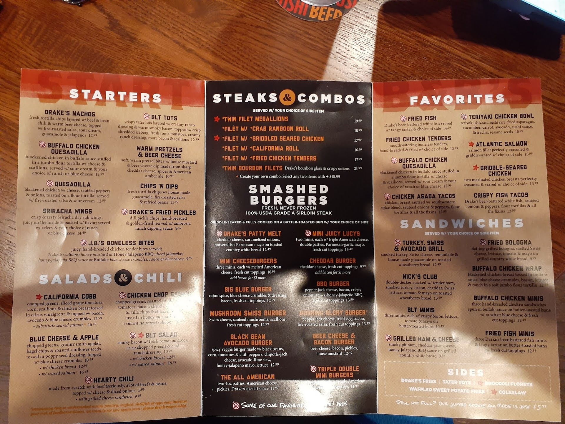 Ā Ā Ā Read moreI ordered carryout from Drake's the first time we patronized the establishment - my partner wanted a burger and we thought we should give a new local place a try. My expectations were admittedly low - I thought for sure that a place with a gimmick like offering both burgers and sushi would inevitably mean one of the two would be noticably higher in quality. Also, sit down fast casual burger chains such as Red Robin usually do not appeal to me at all, and I typically find the food overpriced for the quality.