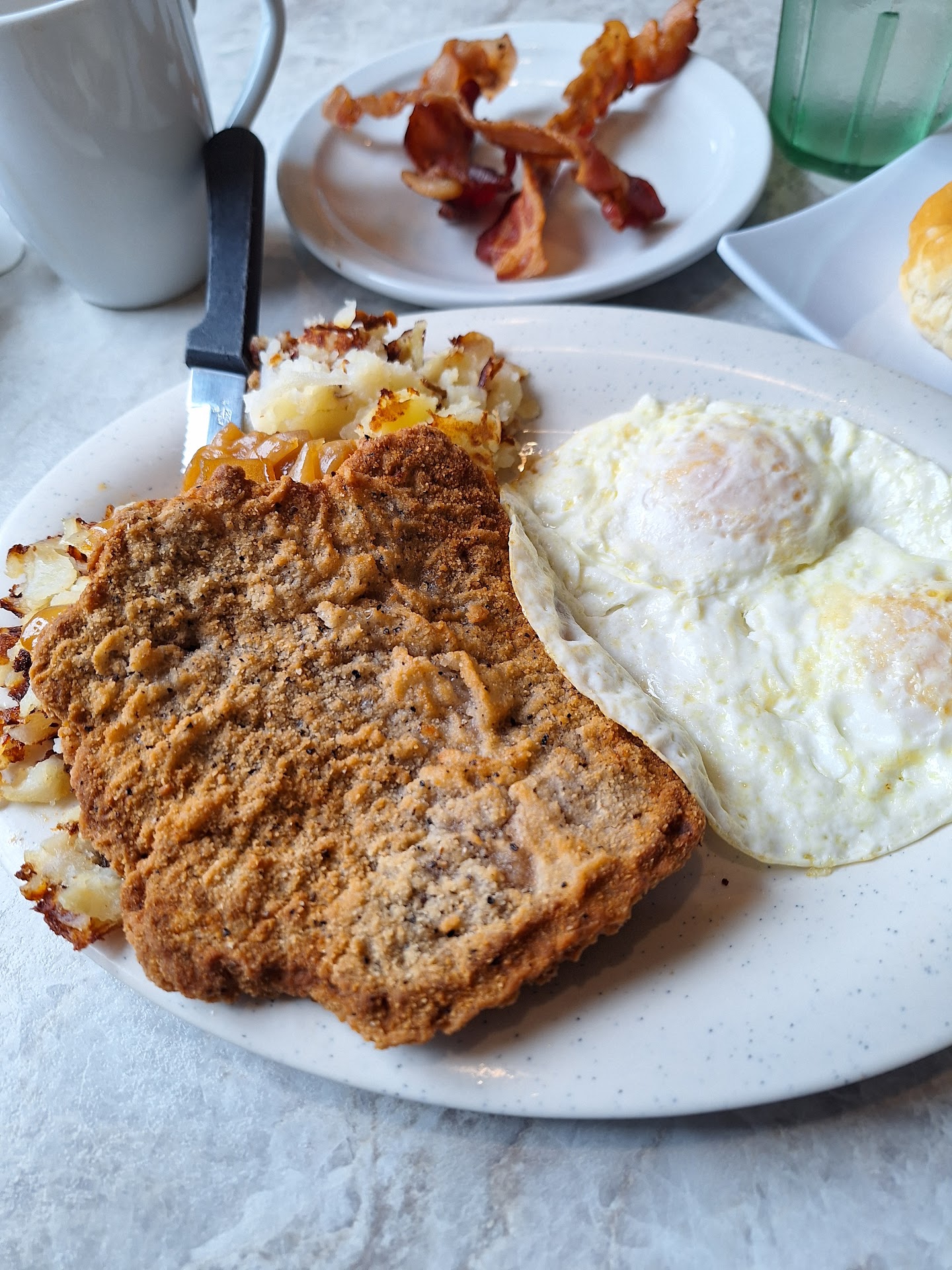 Read moreMy wife & I had to escape the horrid hotel food and ended up here based on a friends recommendation. I am so glad we listened! We had a day on the road planned, so my wife I split the country fried steak breakfast. We chose the German fries and the pancakes for the sides. Pancakes were fluffy and the potatoes were heavenly for to a German boy like me. Honestly, there was more than enough for 2 adults since we could not finish it!