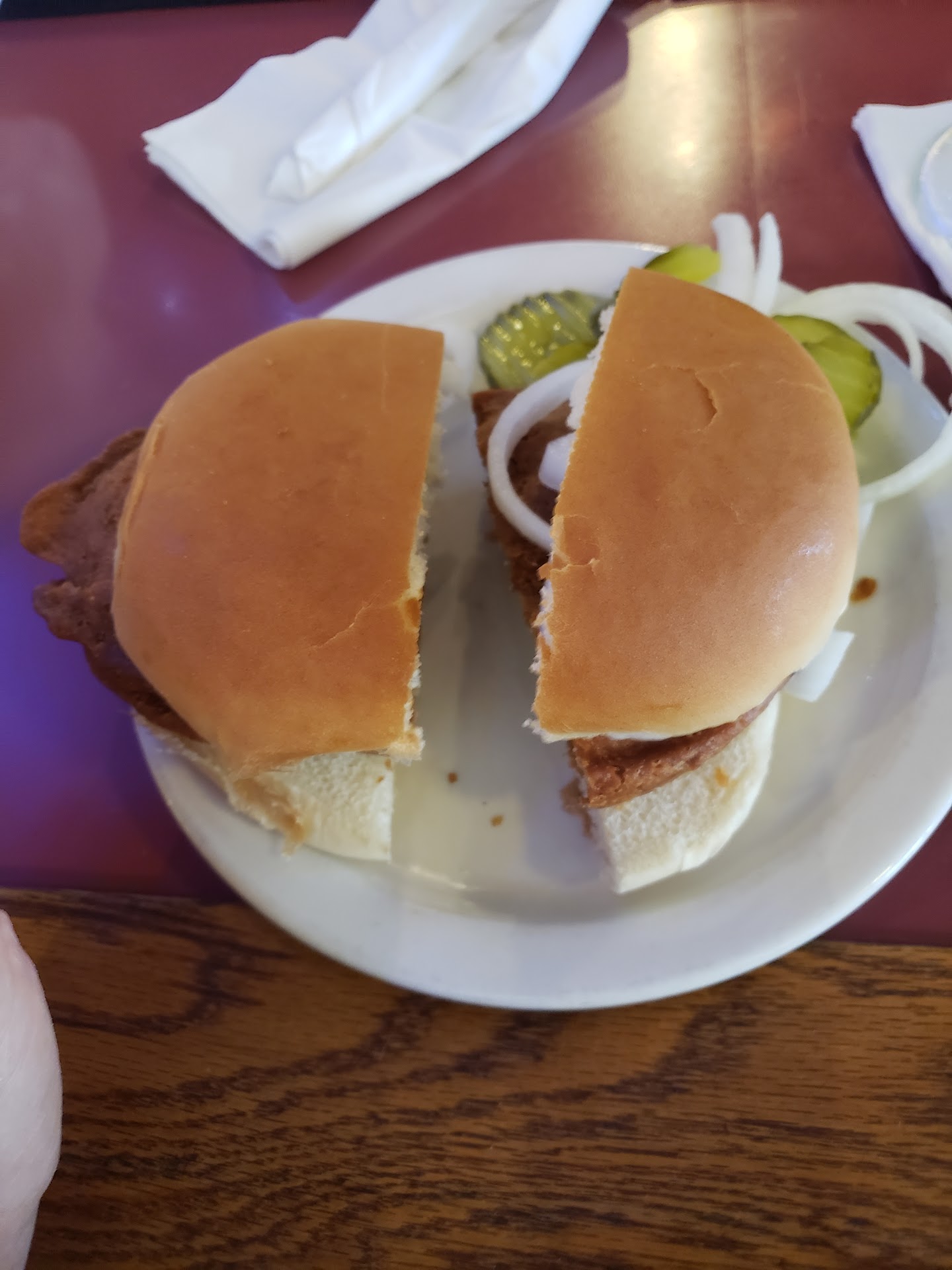 Read moreHated it. Very disappointed, we drove an hour out of our way to eat here. Service sucked, bartender ignored us and the waitress was bickering about whose area it was while we sat there in a nearly empty restaurant for over 15 min... To be fair... The fried chicken was the best batter I've tasted...Everything else was nasty...the beer batter onion rings on the appetizer platter made me sick to my stomach and couldn't stomach the rest of it. There were cheese sticks, mushrooms, corn tidbits, cauliflower, and onion rings...I tried one of each and sent it back, the waitress said we ate too much of it to take off the bill. The manager didn't agree and promptly gave me a refund. The brain sandwich was bland and I didn't like the texture...but I bit into it with a preconceived notion I wasn't going to like it. The waitress was a younger, short, heavy set, red headed girl and got a very bad attitude about the whole ordeal...not coming back next time I'm in Evansville and the last time I will go out my way to try a FoodNetwork...