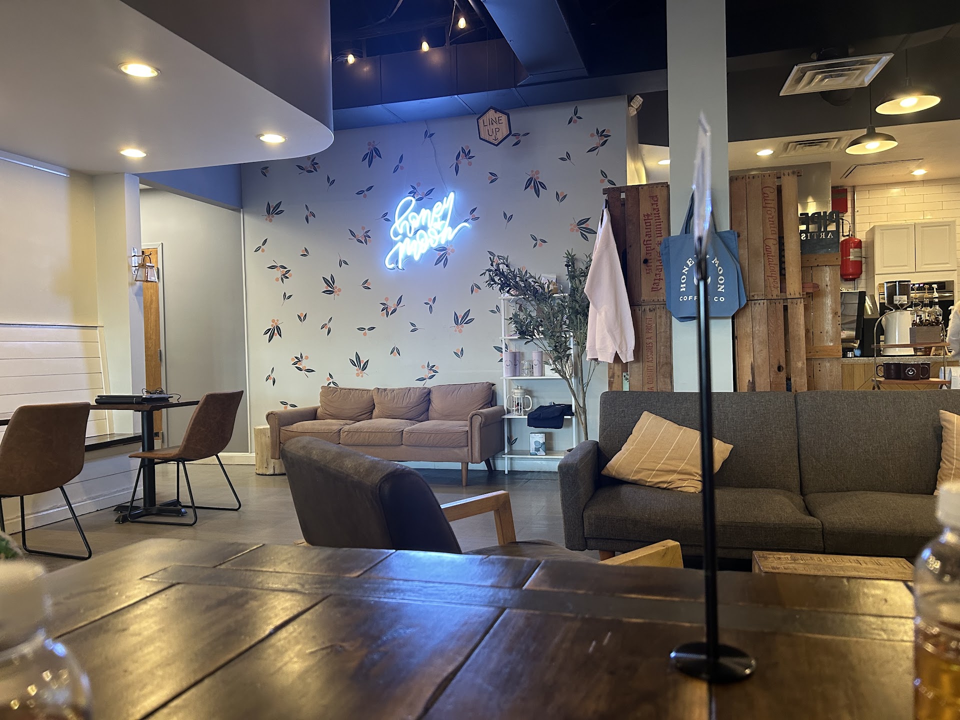 ///I feel bad for giving them two stars but I wanna be honest. I left a 5 star review for the honey moon on the other side of town. But this one over here is hit or miss on quality. One day my coffee will be good hot and sweet , but days like today my coffee was cold, my Bacon was raw. my food is ALWAYS mediocre at best just not worth the money any more. It's got to the point if there is more than two people in side I won't even order food...and then I have to hope my coffee is hot...I love that they support local artists and the atmosphere is fantastic. I rather have good quality coffee and food..for the price they ask for . I come here everyday....and it's. It's every time . not just once and a while. I don't know if it's a staff thing a cook thing or who ever is working but I think someone needs to look into it . I'm gonna drive to the other side of town just to get good food and coffee at the other one...