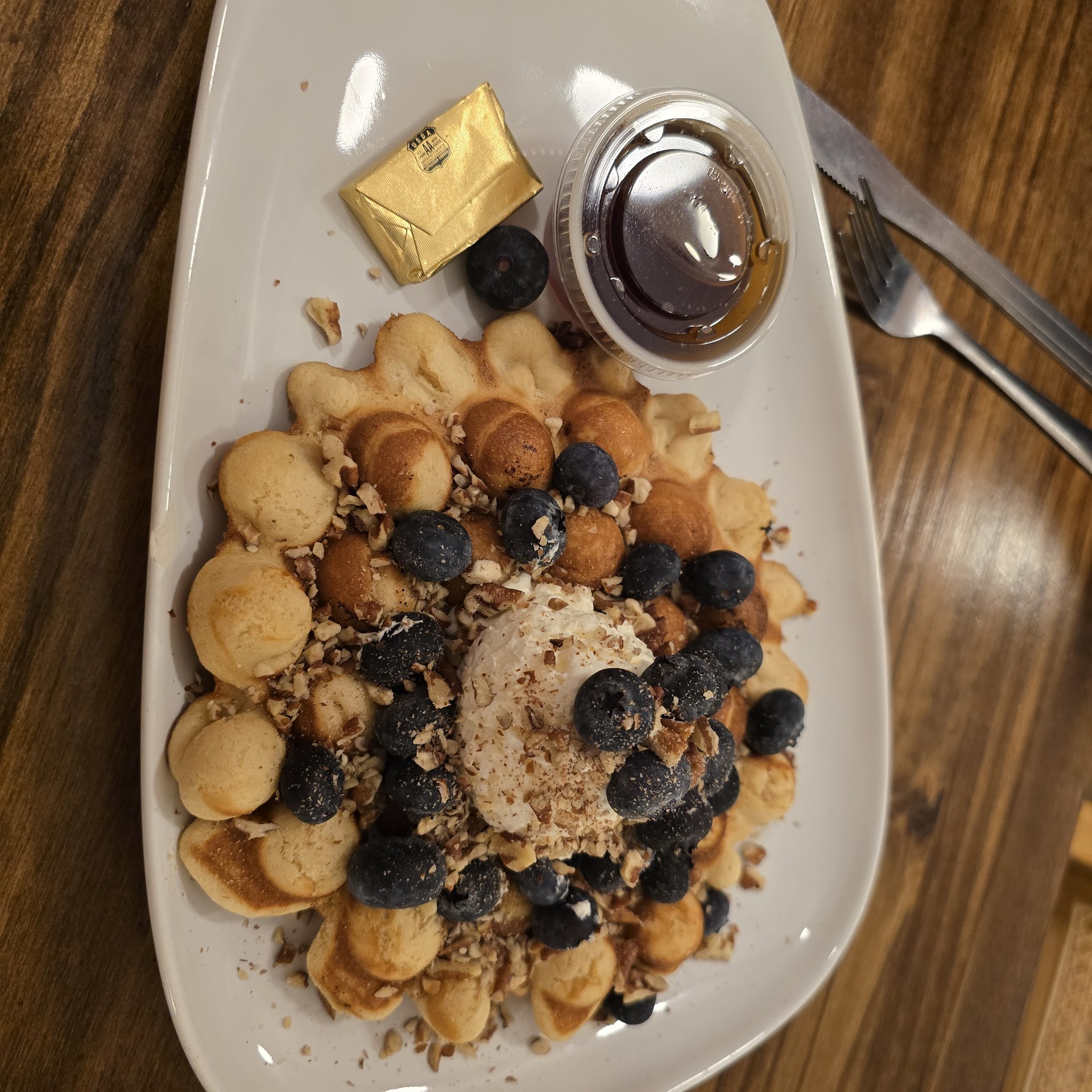 Read moreI ordered a large Honey Moon Latte and pumpkin waffle. It was my first time at Honey Moon Coffee. The lay out was a little different. There was a drink menu on the counter. I didn't see anything that indicated that there was food service. Fortunately, I had seen a food menu and pictures of food on my Google search. When I asked about a food menu, the employee flipped over the drink menu to indicate the food menu. You order at the counter and place a number on your table. I opted for the waffle and mentioned one I saw online that had a drizzle on it. The employee said it might be pumpkin waffle. I opted to try that. It was not the one I saw online as this was darker and didn't have drizzle. It was good but maybe a little too much sweet topping on it for my taste which is surprising as like a lot of sweets. The waffle was lighter (fluffier) in texture than I expected which was nice. The latte was good. It came in a to-go cup even though I said I was dining in. Maybe it's just me, but I usually expect to get a large cappuccino or latte in a large saucer cup. I like the feel and warmth of a ceramic cup. I'm not sure if it is just a convenience thing that people in this area like because Kite and Key also does the same. It was my first time there. I didn't find the service to be very friendly or helpful. They weren't rude, just there. The atmosphere was nice enough. There was nice subtle music playing. I probably prefer a warmer, cozier feel. It was more of a Scandinavian design. I would probably come back for coffee, and maybe try something a little more on the savory side of...