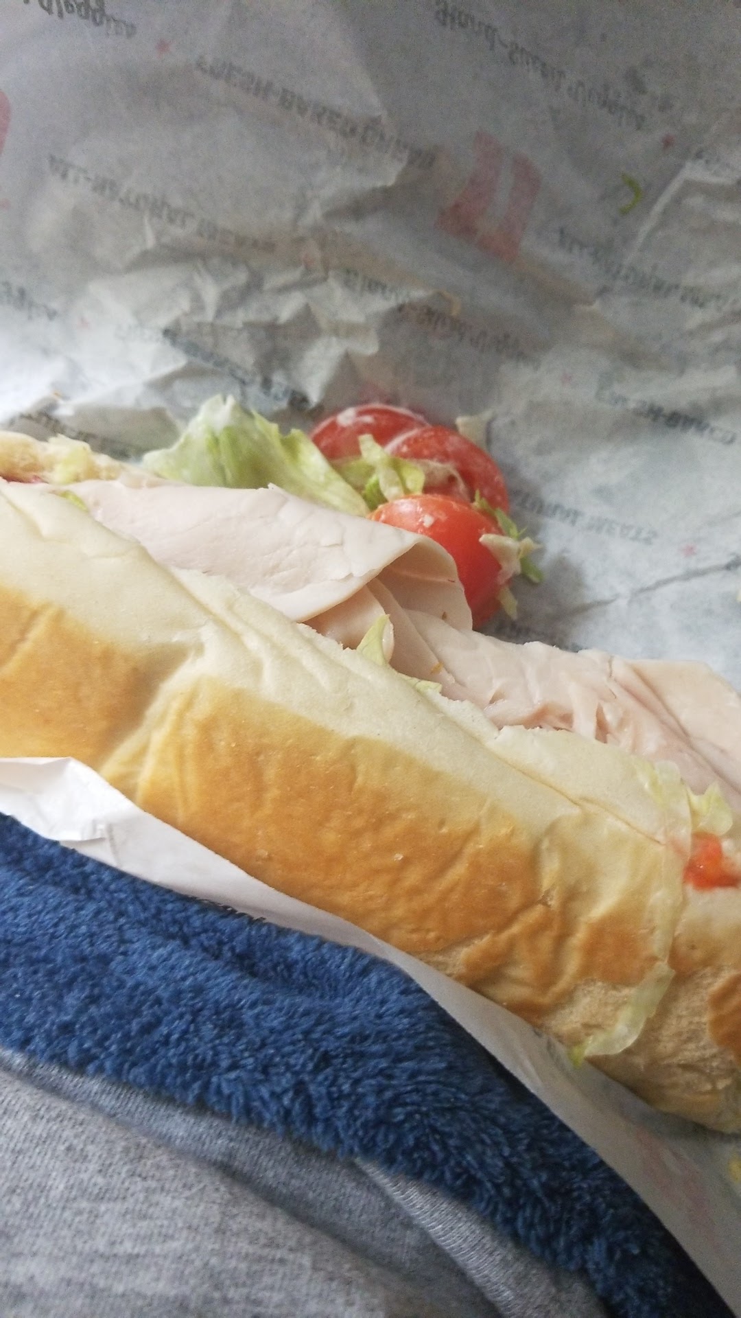 Food was good, per usual. Not sure of the name of the worker but all I can say is she doesn't need to be in food service; poor attitude plus was covered in hickies. The girl that took our order was great (she said she was new) but while ordering another female worker was sweeping the floor, swpt the dirt and trash all at my feet while I was standing by register ordering, never said excuse me or anything and continued to try and sweep around my feet instead of waiting. We ordered our daughter a turkey and cheese sandwich with mustard, forgot that the Jimmy mustard had the mustard seeds in it and asked if they could make us another one because of that. Said worker who was previously sweeping then coped and attitude with my wife about it, wife then gave me the sandwich and asked that I deal with it because she needed to walk out before she lost her cool. Girl then popped off "well I can't help you or fix it if you just walk out". I addressed the sad which situation and explained to her the issue, she was still rude to me about it. When finally remaking the sandwich she made more comments about what we wanted on the sandwich after I stated all I wanted was turkey and cheese and I would put some packaged mustard on it. Once finished with making it she wrapped it and proceeded to slam it on the counter and stated in a smart mouth tone "here you go". This is the 3rd or 4th time we have been here and gotten horrible service and will not be returning to this location. Do better and make sure your workers have some type of class and respect...