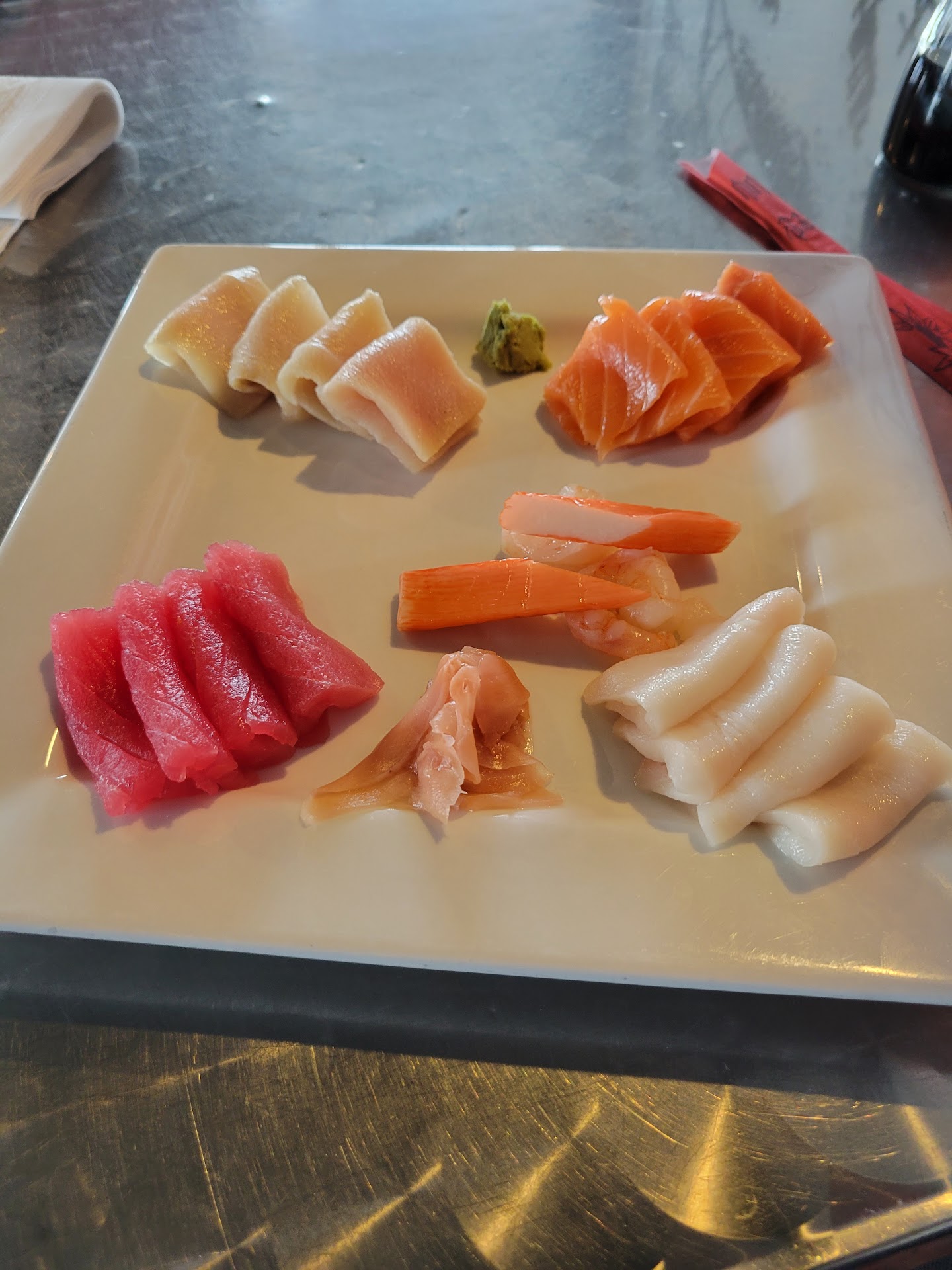 The good part, sushi is great & you will get your order correct. If you attempt to order of the menu then either order will come to you wrong or forget about your order for one person in group. Is it server or kitchen fault? I say both. Servers need to keep an eye on their customers & not have their gathering in front chit chatting! While kitchen might need their eyes examined. As for my main meal: I had stir fry combo (chicken & beef) large rice bowl with few bites of each chicken & beef & scallions as garnish, no taste whatsoever even after I put soy sauce on it. Wife had supposibly Ahi Tuna salad for $10 (after waiting 30 min they forget her order) she got few pieces of tuna on top of Romain lettuce, that's all folks. She would been better off ordering Two orders of Sushi Tuna & got more.