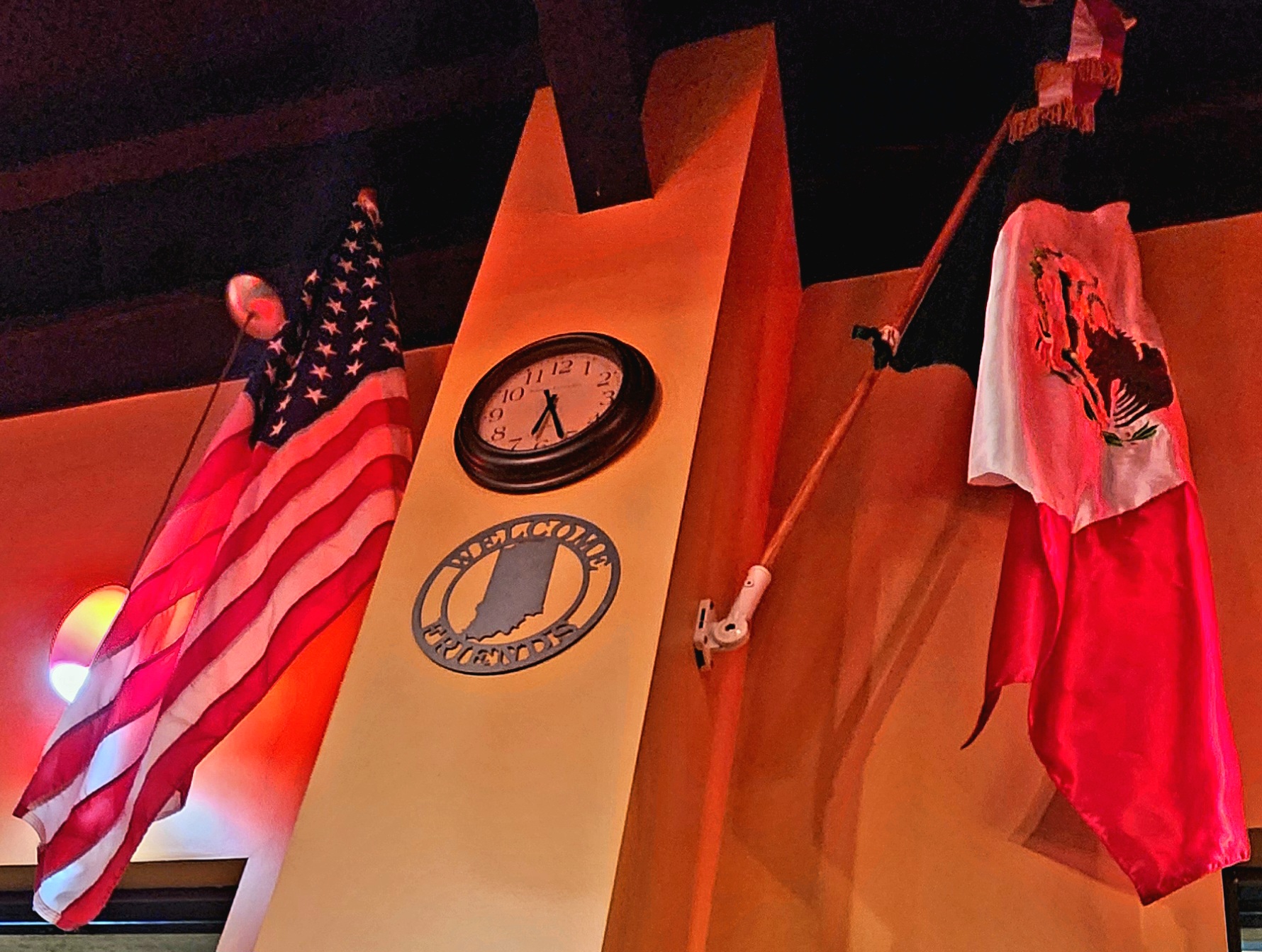 That was Sunday (2 days ago) we ate there. I had to run back down to Evansville this evening to pick something up. I brought my oldest son and got some driving practice in. We stopped by La Campirana for dinner before we left Evansville. I had alambres again but added the cactus this time. He had a carne something burrito. It was terrific again!