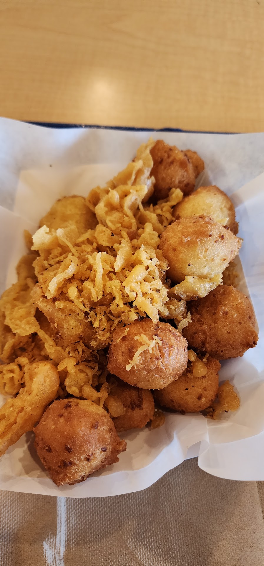 Read moreWe both had the dinner with 2 pieces of fish, 6 shrimp, and 2 sides. The shrimp was good on both plates, crispy on the outside, moist inside, nice size. The slaw was good, nice portions. The waffle fries could have been fried a bit longer, but nice portion size. On one plate both pieces of fish were good. On the other they should not have served the one piece. It was quite a bit smaller than the other piece, and when frying the size was not taken into consideration. This fish piece was all batter and chewy inside the batter. It was inedible. I should have said something, but by the time I had tried to eat it, it was such a small piece there wasn't enough left to show the manager! The cashier was friendly and polite. The restroom needs a good cleaning, maybe a bit...