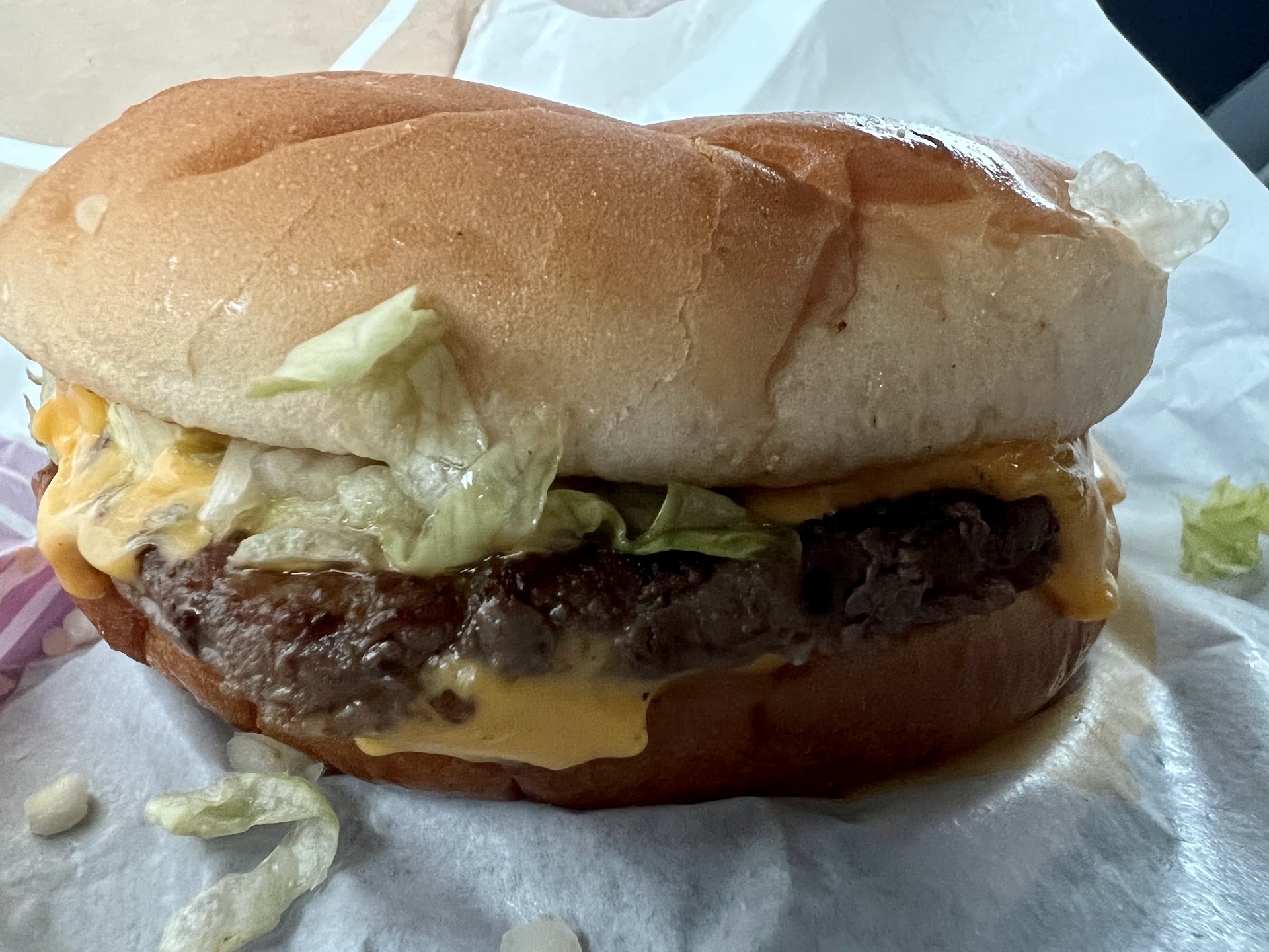 Also, the bun had a rock hard spot on it, and I was trying to figure out if it was cooked that way, or just stale as all can be. Looks like it was cooked that way?