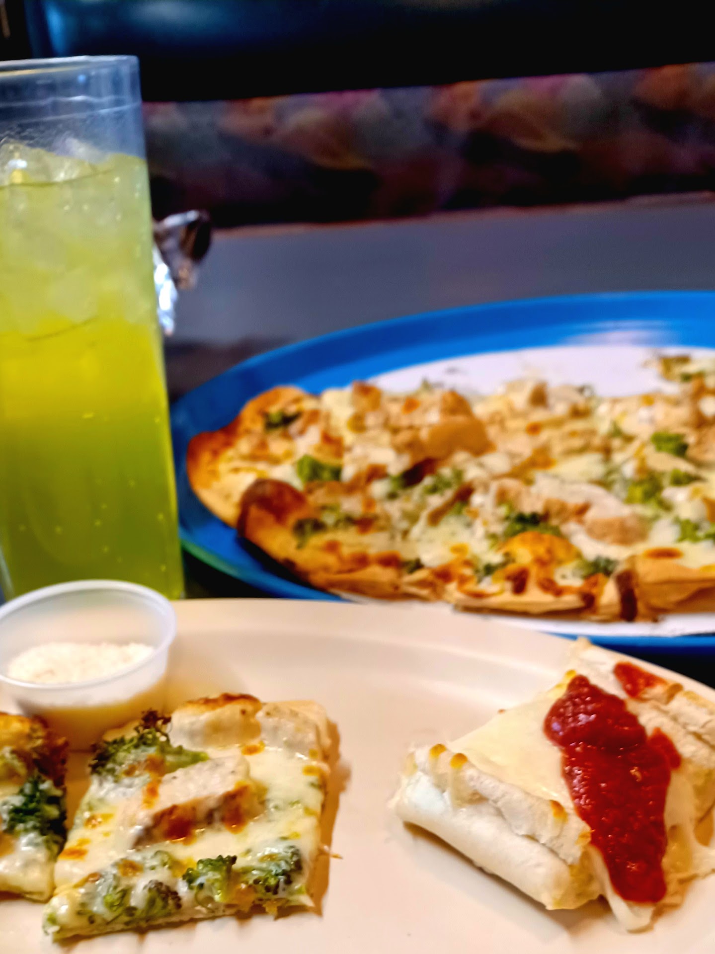 Ā Ā Ā Read moreWent on a weekend evening. Nice crowd, plenty of room in the large booths & it's a large area that still feels relaxed. We ordered cheesy bread & a Houdini pizza with broccoli added. The waitress was busy, but made sure that we wanted for nothing and was friendly. We felt like we were regulars due to the friendly clientele and staff. The food was so amazing!! We were delighted to learn that they had pepsi products and ordered Mt. Dew which came immediately and cheese bread was maybe two minutes after. Bread was not oily or greasy despite the loads of cheese. We had eaten about 2/3 of our bread when pizza came and it was beautiful!! We almost hated to eat it for how pretty it was, but we got over that when we tasted it. Crispy crust, not greasy and again plenty of cheese, chicken and broccoli. I have stomach issues with greasy foods, this was awesome with no tummy upset! I rarely get to have pizza and I do enjoy it, just can't handle the consequences. I now have somewhere to get pizza and will definitely be the regulars we felt like! We had a 16" pizza, bread & drinks for around $30 with a few pieces of pizza for later, it was a great dinner for a reasonable price in a friendly place. Couldn't ask for more!! The menu prices were current in April of '24 in the photos & no I didn't use a filter of any kind on the pic I took of our meal. (Just that well presented) I would recommend this place to my most discriminating friends...