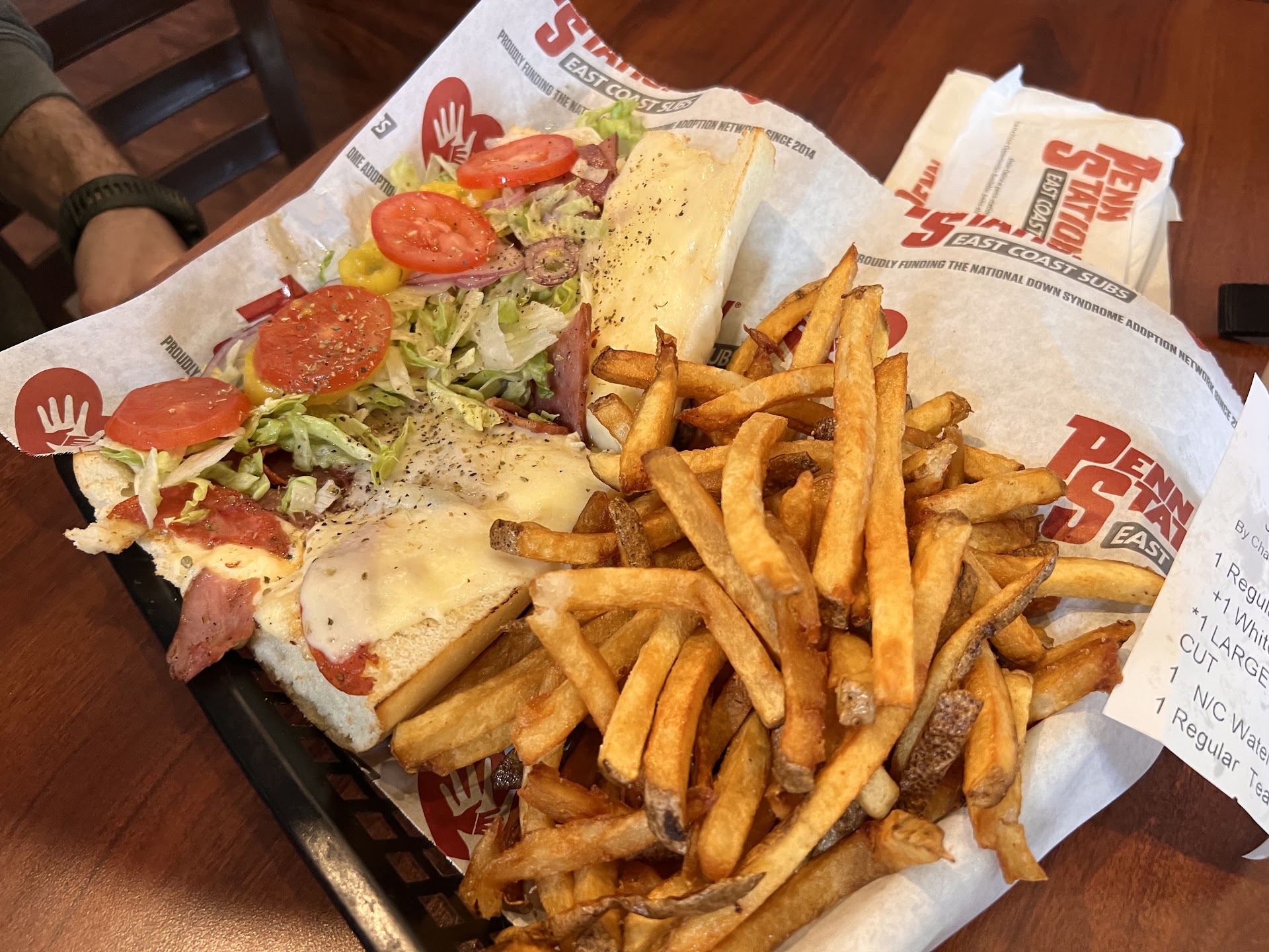 I don’t usually leave reviews but the GM has terrible customer service skills and he should be held accountable. I work in the industry so I’m aware of how difficult people can be and I am not one of those people. My sandwich was being wrapped by two workers who did not have on gloves, red flag number one. Two, was the fact that my sandwich was missing toppings, I bring it up to the counter just so they can add it to my sandwich no biggie and Chad, the GM, throws lettuce and tomato on a to-go lid and hands it to me. As this is happening my mom is saying the fries are cold, and they were. I said verbatim “I know this is crazy, but the fries are cold”. Chad begins to tell me they are not in fact cold, like they didn’t just have fries sitting under the warmer. I just asked for fresh fries, he begins to try to go back and forth with me about the fries about when they were dropped and a whole bunch of non sense I didn’t care for. He simply could’ve apologized and made some fresh fries..I live out of town and was so excited for my penn station and he ruined the experience, and it was my...
