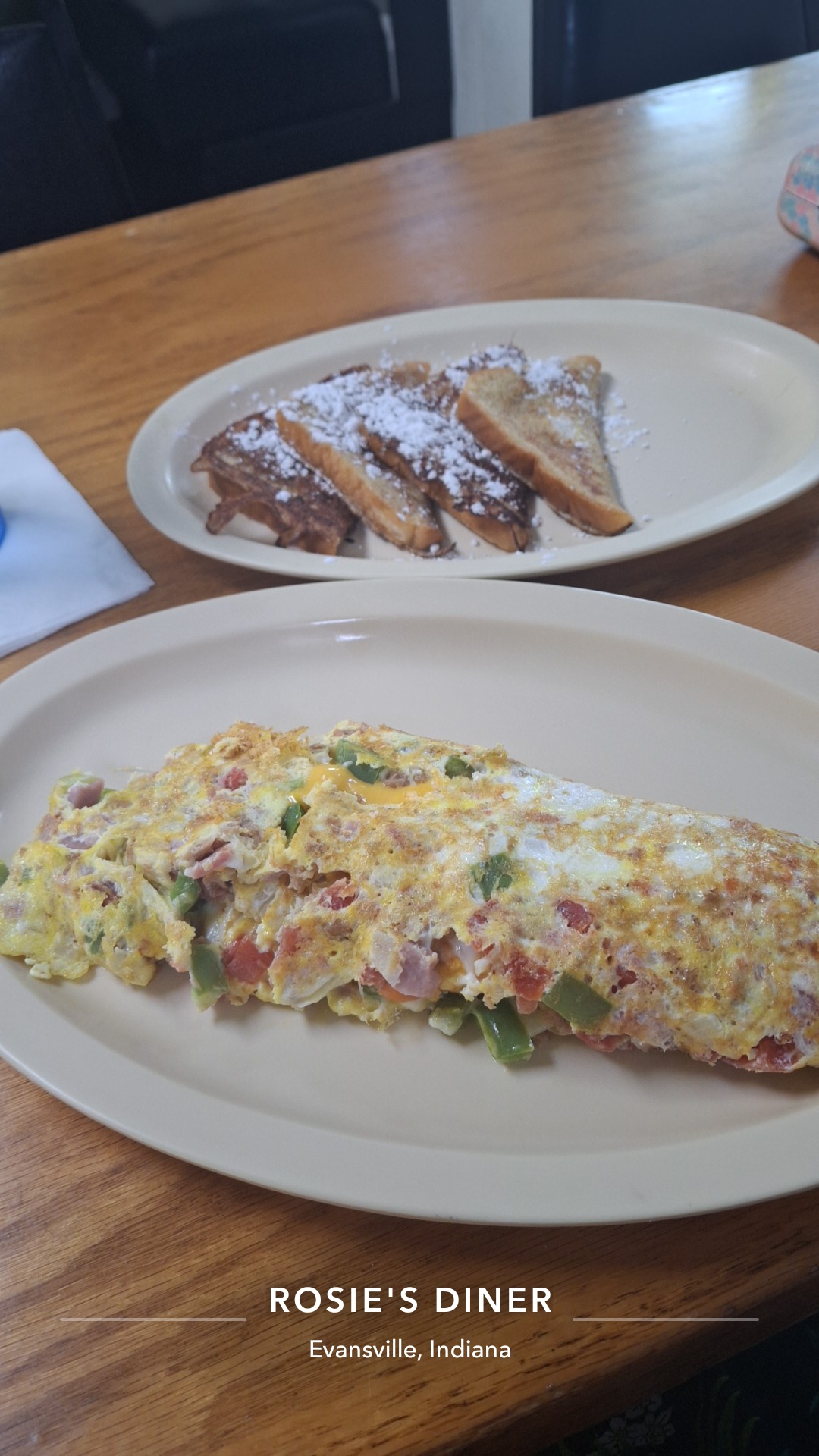 After a 0 for 4 food experience around Paducah we wanted a decent dining experience on the way back to Michigan. After some surfing before we left, we found Rosie's Diner as a 4+ proposition. Now it wasn't easy to get there and we had some interesting experiences along the way...but that's another story.