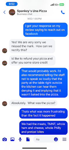 6/28/2024 This is an update to my original review. We still love Spankys Una Cafe. I will praise a place, but feel justified when a place starts to slide, also reviewing. The pizza we got, The Boss, was great. The 7 piece wing we got, however, we're not, and haven't been. The largest one out of the order wasn't even bigger then a package of Splenda. Also, the attention to cleaning, I'd give a 3. I was there recently, when they opened, and Wow, the lobby floor, glass doors, drink cases were filthy. Nothing had been swept, or cleaned. And they weren't short staffed, lots of staff on premises, so no excuse./And the register person's clothes, looked like they're been slept in, twice. So if the business is falling of, you know why/What a great place, and right on Haynie's Corner. Went for lunch, service was quick, but still relaxing. Our waitress Hannah, just as sweet as can be. Ryan, the owner, took time to stop and talk with us, shared some stories about his place, couldn't ask for a nicer guy. And the food, ( which we have eaten for some time,) was fantastic. I recommend it highly. If you get on their website or Toasts web site, the hours posted are wrong, they open at...