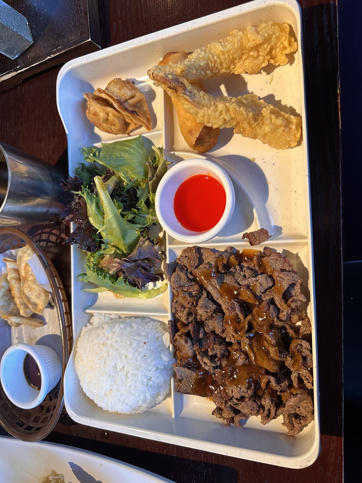 First and foremost, the quality of the ingredients and how they are prepared is always top notch here. The gyoza is always piping hot, perfectly crispy, and wonderfully balanced in filling. All the teriyaki and stir fry items are always delicious, without an excess amount of sauce to drown the meat (not too little either).