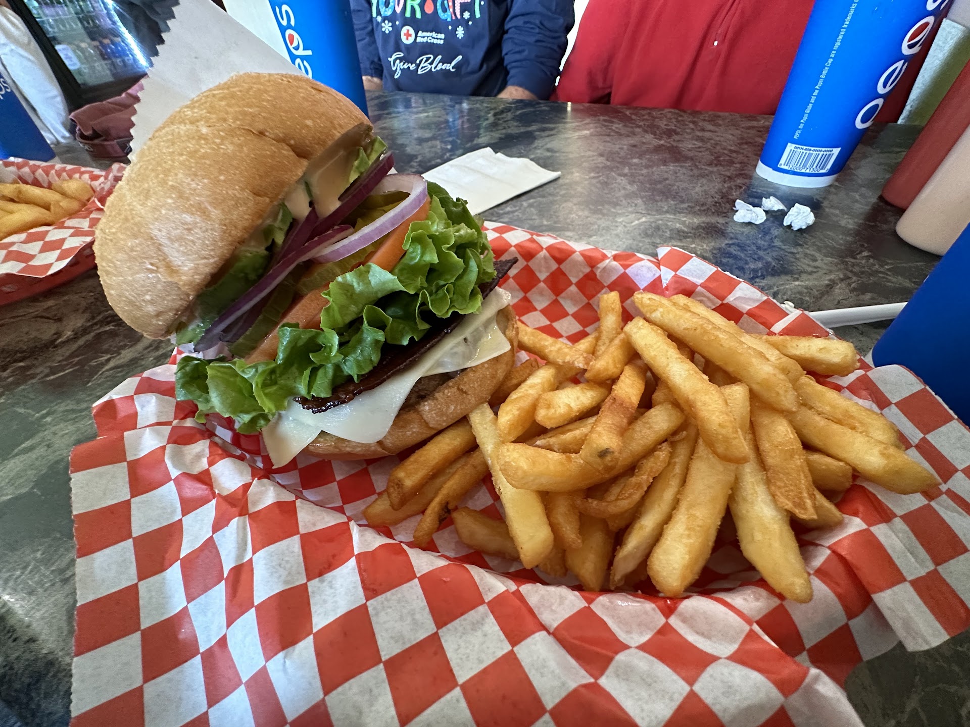 The burger was fantastic, even though I ordered it with no pickles, onions, or tomato (I’m sensitive, all right? 😆). But they pile the burger with really good, crisp lettuce. No soggy gross lettuce. The kind of place you want to get lettuce on your burger.