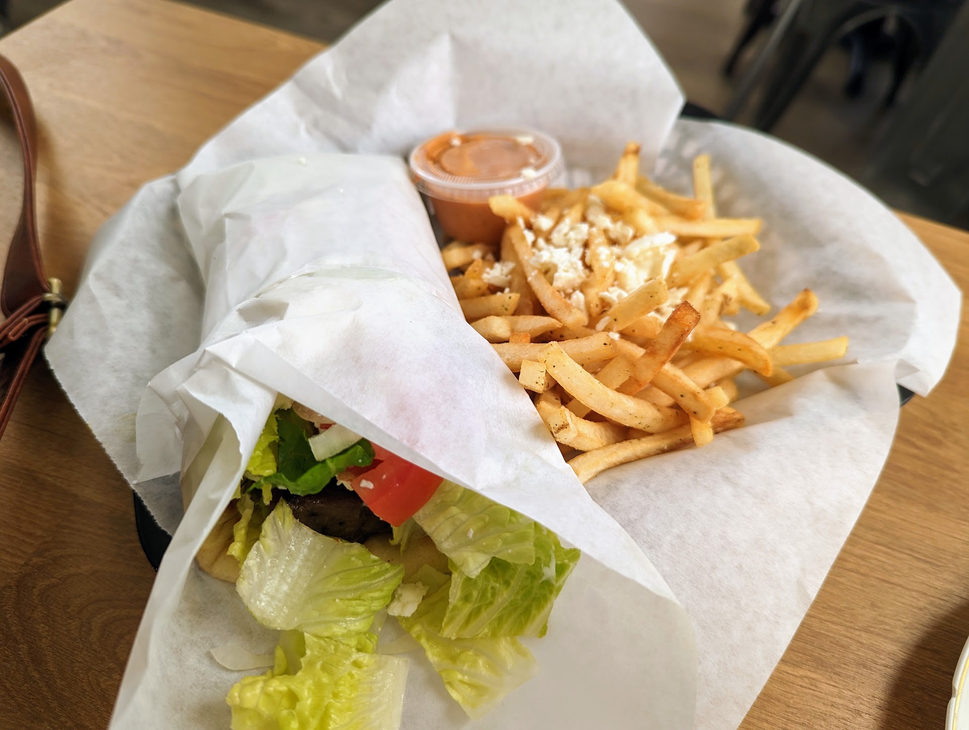Dec 2024: We came here for the fries (introducing Greek food to family). We were not disappointed! Another family member had a salad that was modified around her food allergies. Staff is polite, warm, friendly, and accommodating, like family, and 5 star restaurants. They check on you after a little while to see how you like your food and if you need anything. Although small in size, and the free dispensed water cups are a little small (bottled drinks from a slide-door fridge is another option), it is still well deserving of the overall 5 star reviews listed here. Of the fries: They have just the right amount of spices and salt (It brought back good memories of another great Greek restaurant I grew up eating at in another city). I would rate the amount of feta cheese as 9/10 (I love cheese). The fries are similar to that of McDonald's, but it is not greasy. Crunchy on the outside, soft inside, good consistency, not starchy, just right. We loved the relaxing nighttime-perfect Greek jazz that played while we dined, too. We can't wait to try the pita and...