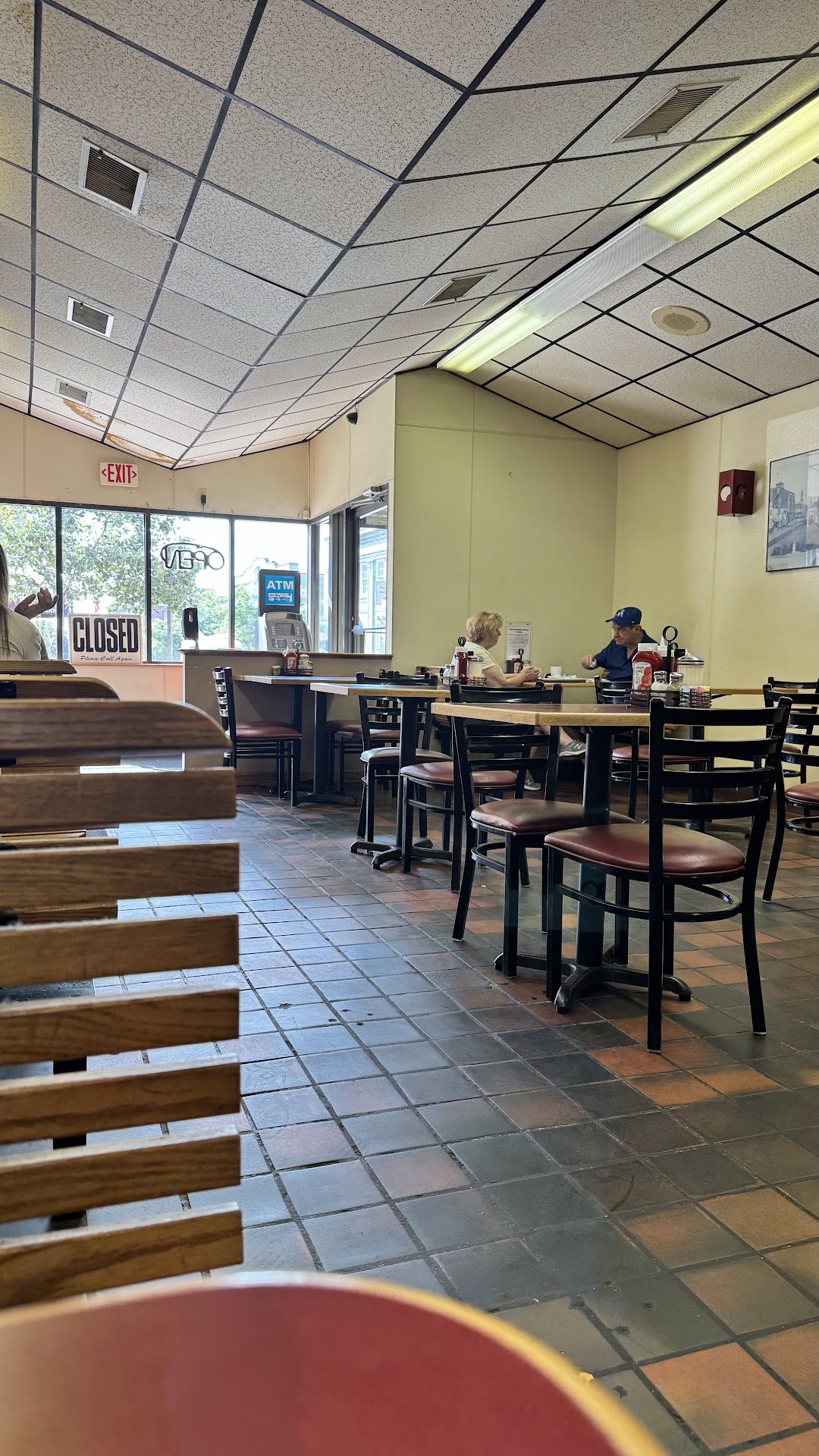 The floors whispered tales of meals past (perhaps in need of a knight with a mop), the ceiling tiles looked like they’d survived the Boston Tea Party, and the walls could’ve used a fresh coat of paint—or possibly an exorcism. But fear not! The service was swift and friendly, our waitress materialized like a breakfast fairy godmother, and the menu was a tome of endless possibilities. Fifteen omelet choices? A crepe fit for a sugar-crazed prince? The Queen and I nearly succumbed to decision paralysis.