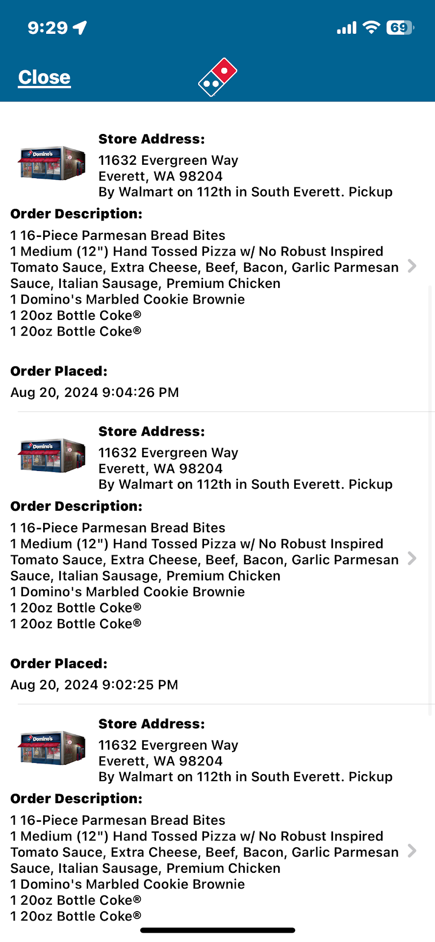 This store is terrible. They never get anything right. I ordered at 5:20, the app said ready in 20 minutes. I drove to the store and the app said the pizza was done, at 5:43. I went in, they said they lost my pizza, it would be 2-3 minutes. At 6 pm I went back to the booth. "Sorry, we had to remake it, we fully lost the pizza". Fine. At 6:15 the girl brings me my pizza and offers a 2 liter of coke, which was nice, but I declined. I get home, open it, and none of my customizations are there. I asked for no olives, no beef. What's it got? Olives and beef, not the salami and garlic I ordered. I swear, this is the last time I'm going to Domino's on South Evergreen in Everett. I don't know that they've ever gotten a pizza right, and on time.