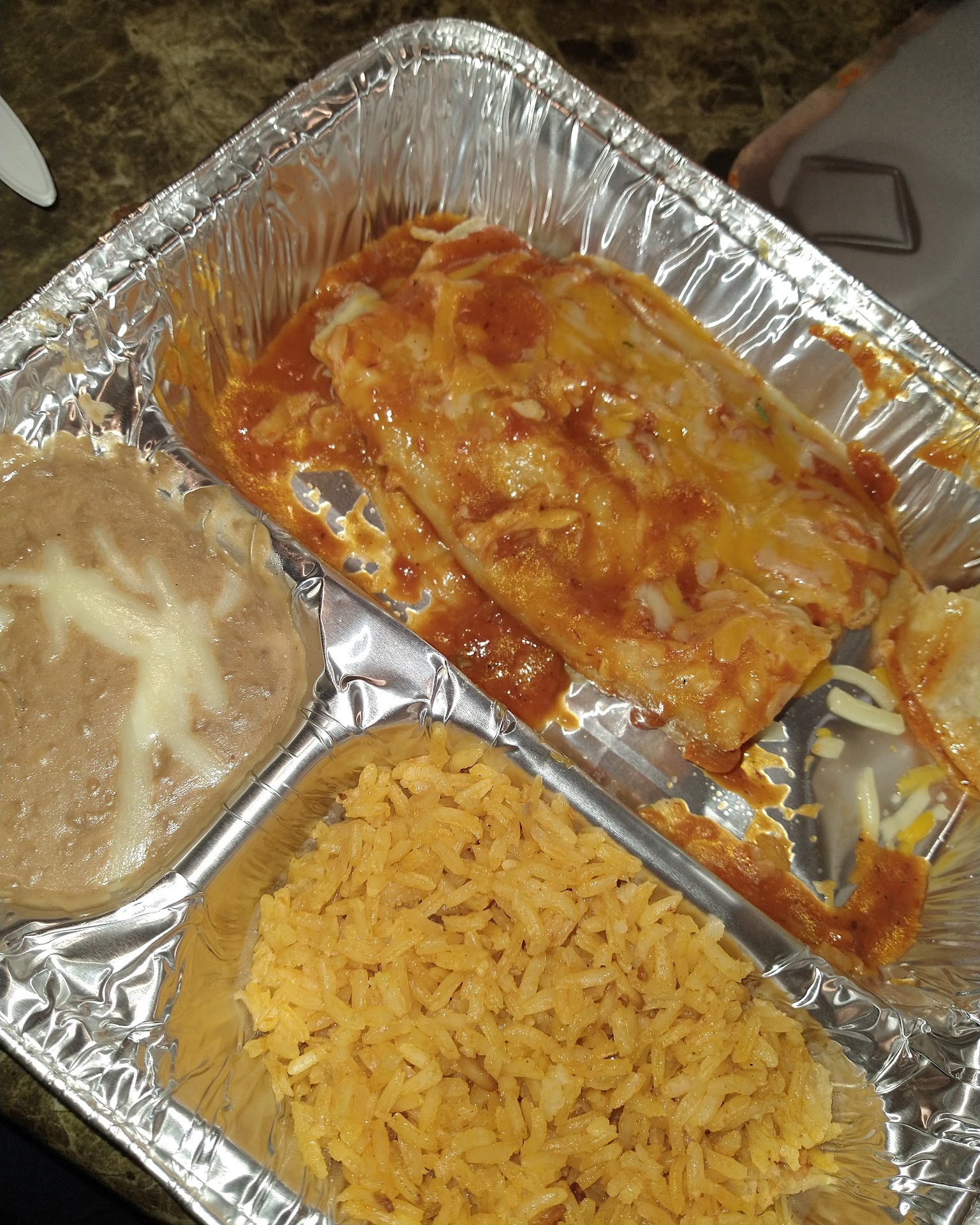 I ordered take out and went to pick it up. The restaurant was partially full. Dividers at the tables are compliant for Covid. I lined up to pick up my food and noticed 4 young guys in front of me waiting to order. Most of us waiting in line were masked and two of the guys waiting were not. When they got to the front only the two masked guys were helped, one quickly put his mask on and was helped, the fourth unmasked one left the restaurant and told his buddies to order him something to go. The restaurant is following Covid guidelines. I was able to pick up my food and as always enjoyed my meal. I tried a new plate which had plenty of meat. The rice an beans was good. I usually order too much food and was able to save the rest for another meal. It is better when ordered hot but reheat Mexican food is also good. Try the take out or sit in for a good meal in the restaurant. You will be satisfied with the food and the...