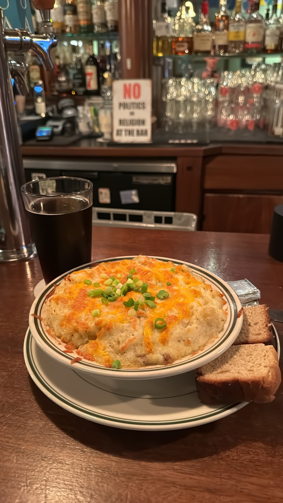 Read moreI usually love going here. As a bartender I always appreciated the service and atmosphere. Unfortunately yesterday (8/29/18) in the evening, I had the worst experience there I've ever had. First and foremost were we're sitting away the table for 10 minutes before being greeted; it was only as we decided to go sit at the bar that we were told she would be with us soon. So we're waiting a bit longer and and she took our order. I ordered a water and beef stew and the server was clearly irritated that I ordered water.... the food came out luke warm when it did come out... I wanted to leave once I had finished my food, beer, and water but the server was too busy blatantly flirting with the table right next to me. I tried to ask for the check after about 5 minutes of that but got ignored... then after the server goes blatantly flirts with two older gentleman in the back she comes back and throws or bills away is without saying a word. At this point we had finished everything we ordered a long time ago but still she goes and just starts talking to the table next to me. After that instead of taking my bill she walks away... I ask the bartender to cash me out since I've been waiting for almost 20 minutes and was told to wait at my table. So I wait longer and finally when the server and bartender are busy giggling behind bar I remind them I need my check so I can leave and after that the bartender asked me "Do you know how this works?" I know exactly what bad service is. And after that I was told to never come back... so let me get this straight... I can't express that I had bad service without getting...