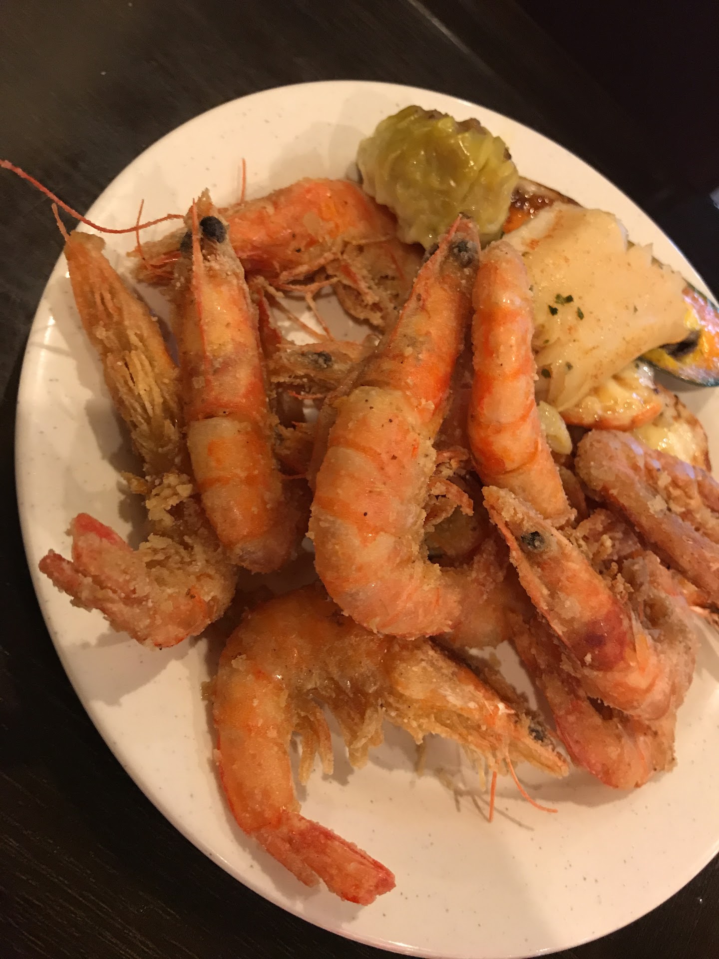 There is a decent selection of Chinese food, seafood which I absolutely love (i.e. crawfish, snow crab, shrimp cooked a few different ways including the best fried shrimp, in my opinion), a few fish options, some sushi options, 3 or 4 different soups (including egg drop, wanton, sour and spicy), seasonal fruit, some baked goods, ice cream, etc. Basically, it'll be enough to feed you. Oh and there is a newly installed Hibachi grill from a few years ago. There is typically nobody behind it, so get the attention of one of the employees and don't feel bad about it to get their attention and they'll send a cook.