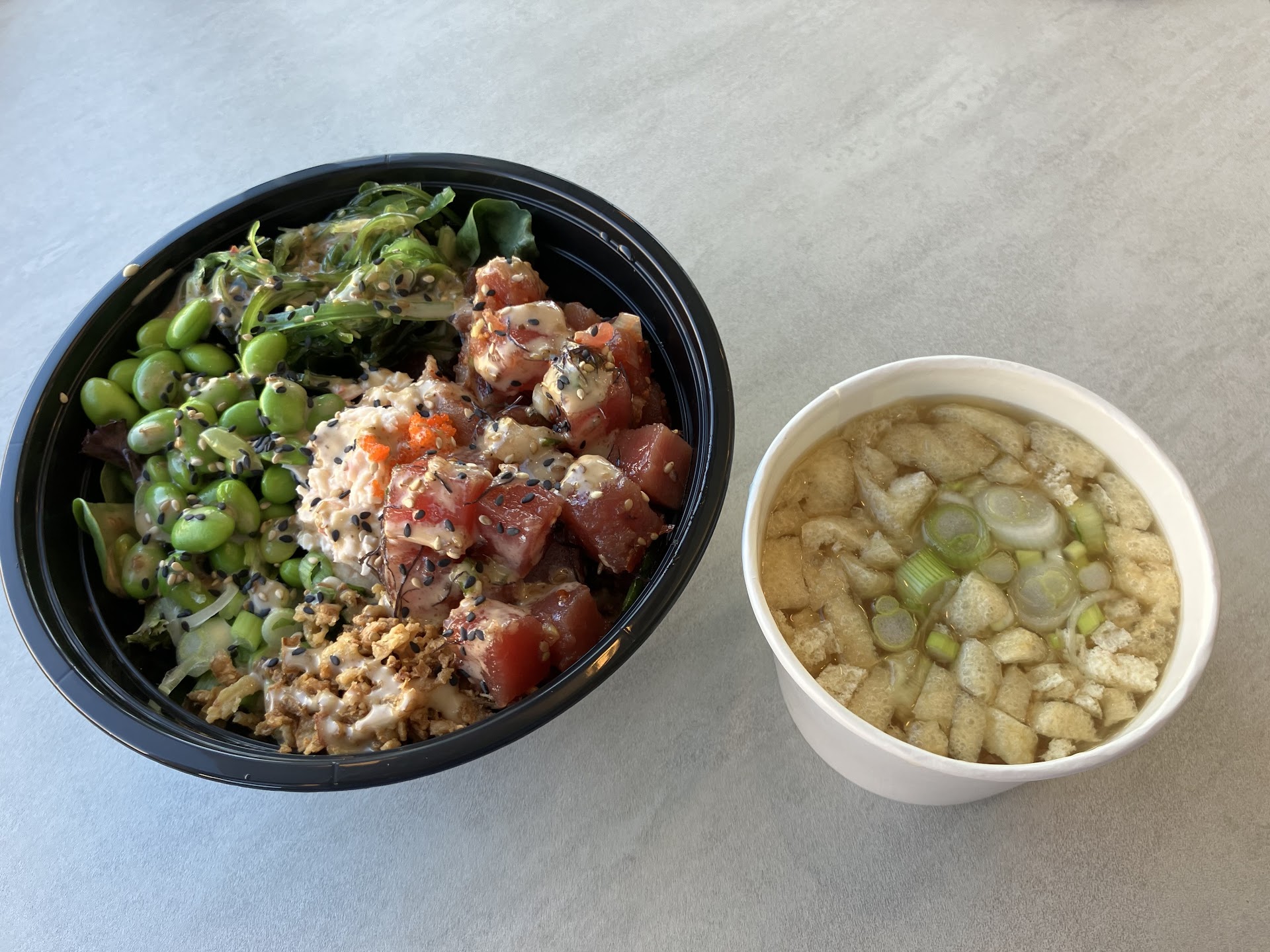 DISH ORDERED: -Tenacious Tuna (my selections: BASE: 1/2 salad + 1/2 white rice; SAUCE: Sesame Oil, TOPPING: sesame seed). All other ingredients: already decided for me, whew! -Miso Soup to wash it down (my selections: w tofu + onion).