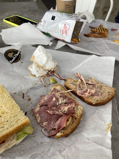 Read moreGot the pastrami havarti sandwich, yes it says picked onions and dijon mustard. It was so incredibly acidic it was practically inedible. I love pickled onions but the amount of dijon that also happened to be acidic was way too much. I end f attempting to scrape off some of it to see if it was salvageable but there was no way to fix that. 40 dollars for two sandwiches and a coffee is crazy. Also paid for extra avocado and they gave me four of the tiniest slices I have seen. Service was fine but food was just so terrible and literally made me sick because it tasted like I was biting into a vinegar sandwich. I came here because of the positive reviews but now going through them I fully understand each individual...