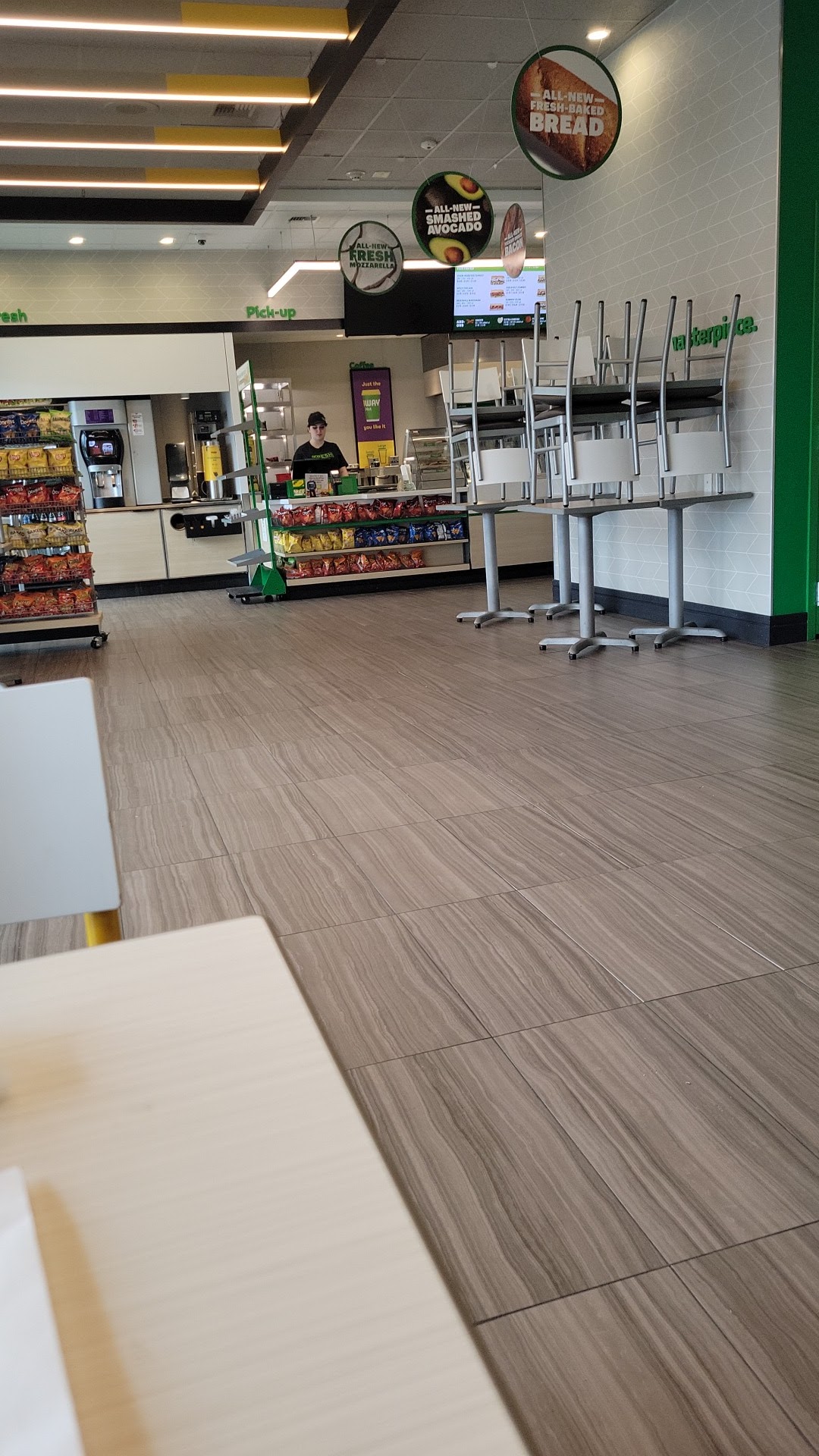 Food was good the decor is very green and yellow. The lady making our sandwichs was nice. The only problem was the young girl working the cash register. She was more interested in flirting with the guy near me to pay attention. She rang everything up asked if i wanted anythjng else. I stuck my credit card in and waited for her to complete the sale. She kept chatting with the guy. I said my chip is in to let her know she could complete the sale. Next thing i know the amount has gone up a couple of bucks. I said what gives why did it go up. She said you wanted a chip. I said no i said my chip was in the reader so you can complete the sale. I thought you wanted chips. No i didn't want chips. I finally got thru to her the second time i explained that no i wanted to complete the sale. Meanwhile she kept looking at the guy snd not...