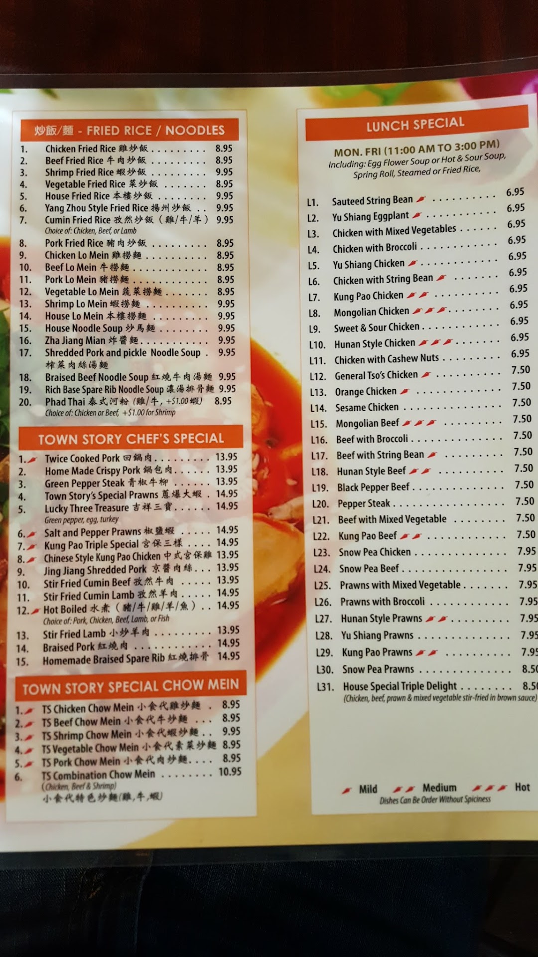 ย ย ย Read moreNot your old Peking Duck. Reviews do not take into account that this place, what used to be "Peking Duck" is now Town Story. The new ownership has redecorated the interior, expanded the menu, closed down the lounge, and improved the food. The remodel make the inside more comfortable and bright (at a budget) for not having any windows beyond the one by the cashier. Closing down the lounge is a good strategy for removing the sketchy characters coming in through the dining room. The menu has more options but pretty much kept all the classics. The food still serves huge portions family style and their lunch menu (M-F only) is still very inexpensive (at less than $7). While so far I have only ordered the brocoli beef and the General Tsos Chicken, I might never have to order anything else again because both were excelently executed. This has become my new favorite in Everett. I really hope they keep up the high quality experience and not fall victim to unflavored food for the sake of the few complainers. I will have to say that I was disappointed with their spice level. At the max 5 stars it felt like a 2.5 star dish but most people don't like...