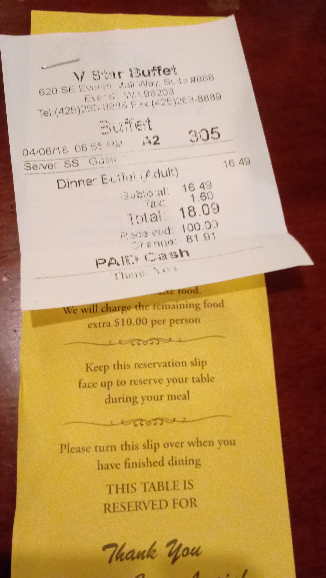 there are dirty, food covered signs everywhere telling you about the $10 fee per person if you do not finish your food. there is no further elaboration and it doesnât tell you how much food can be left uneaten, which leads me to worry about the establishment taking advantage of this rule and their customers. is a single piece of chicken considered a waste? what about a teaspoon of rice? where is the limit? and even then, their food is so abhorrent that leaving something uneaten because it is inedible, too greasy, not in the right temperature or anything of the sorts is totally reasonable.